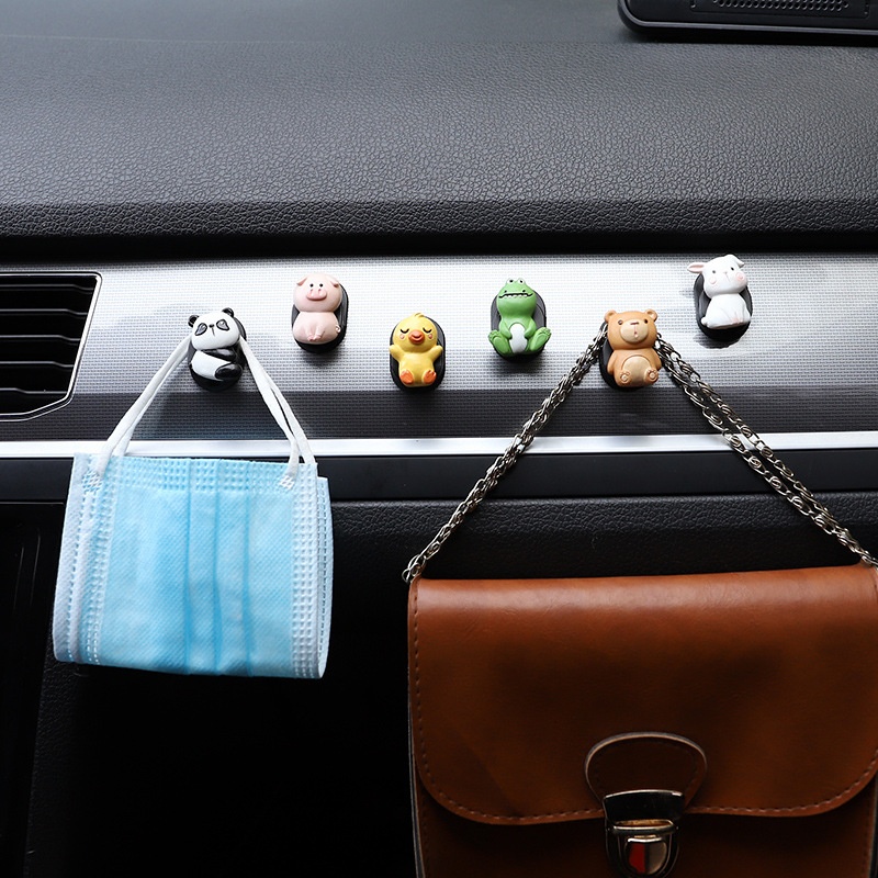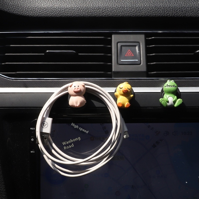If The Car Center Console Decoration Cute Cartoon Animal Hook Home Adhesive Data Cable Headphone Cable Storage
