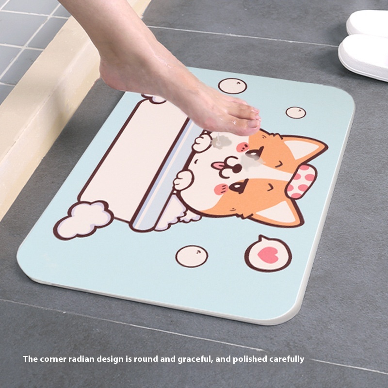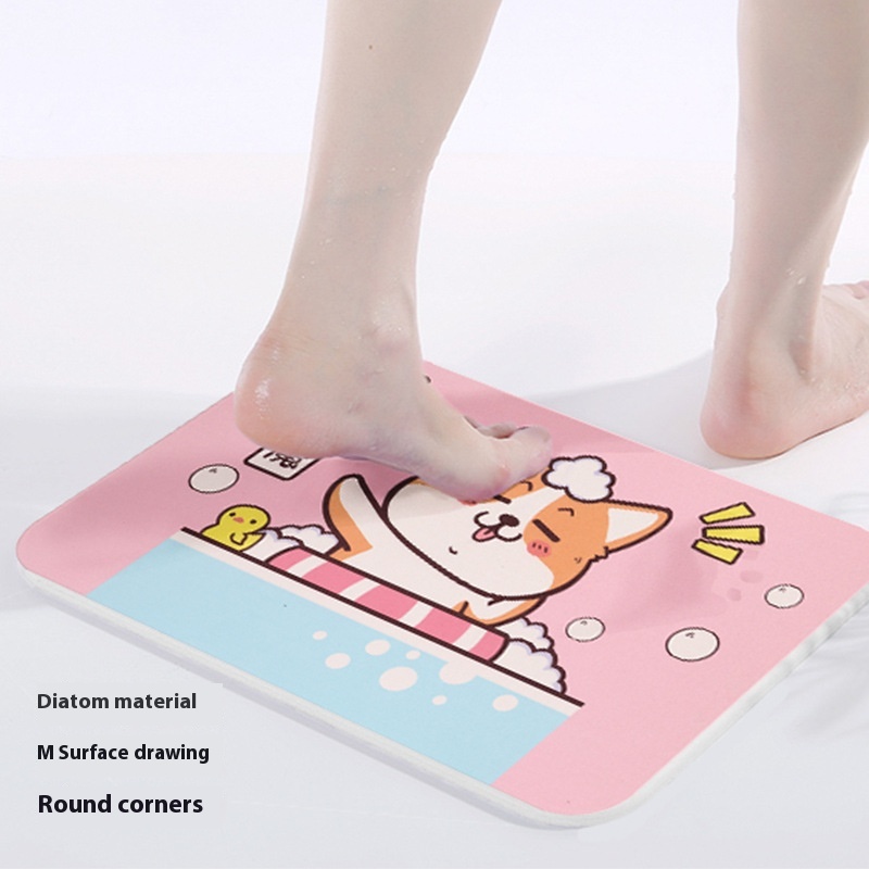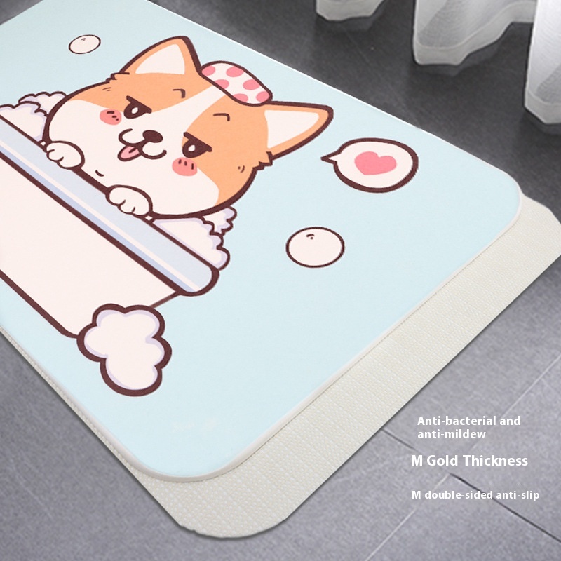Diatomaceous Earth Creative Cartoon Animal Foot Mat Corgi Bathroom Absorbent Diatom Mud Floor Mat Household Anti-slip Mat