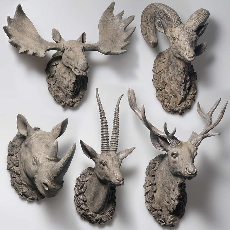 Creative European Retro Simulation Home Furnishings Animal Head Resin Crafts Wall Hanging Bar Wall Decorations
