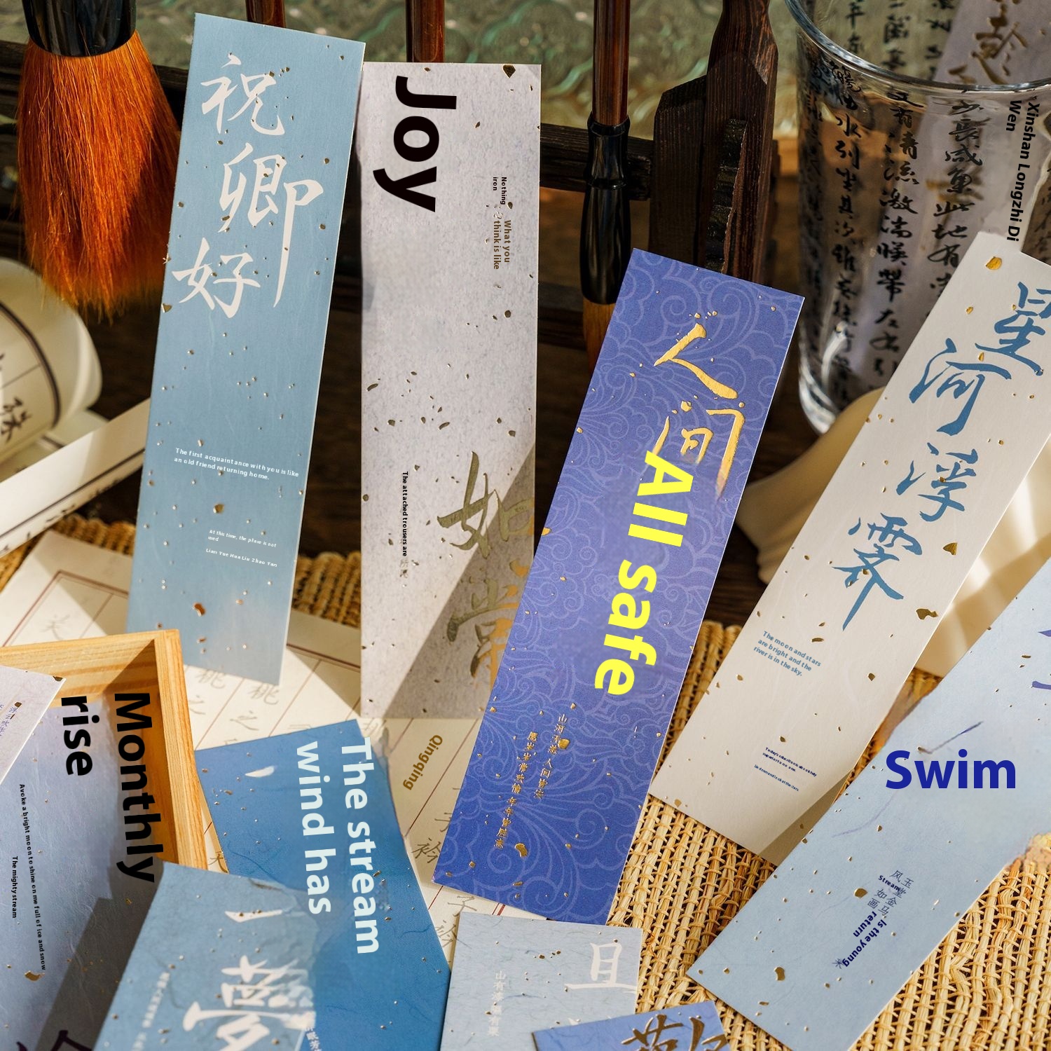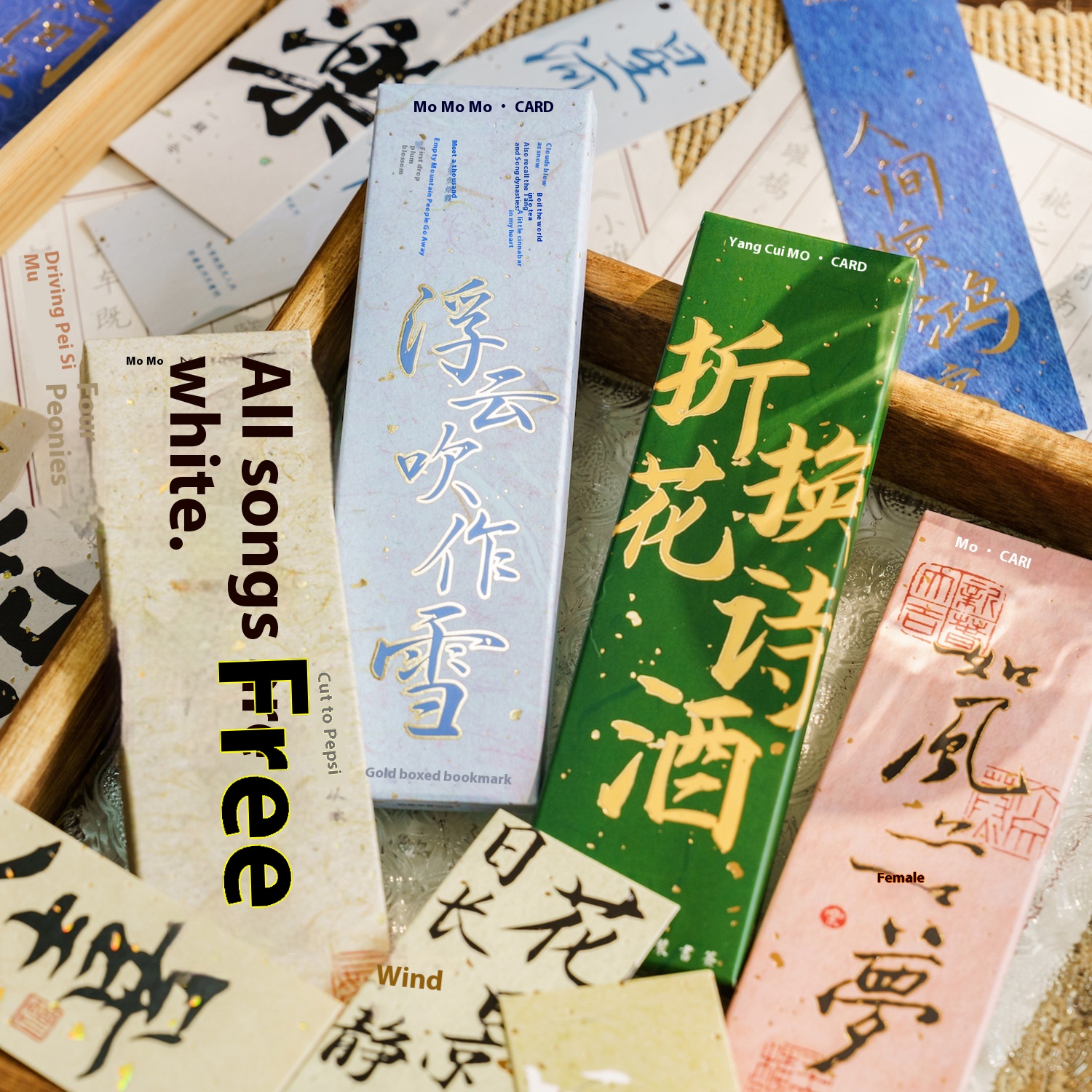 Momo Pen And Ink Danqingke Series Boxed Bookmarks Ancient Calligraphy Ancient Poetry Blessings Gold-stamped Text Reading Annotation Cards