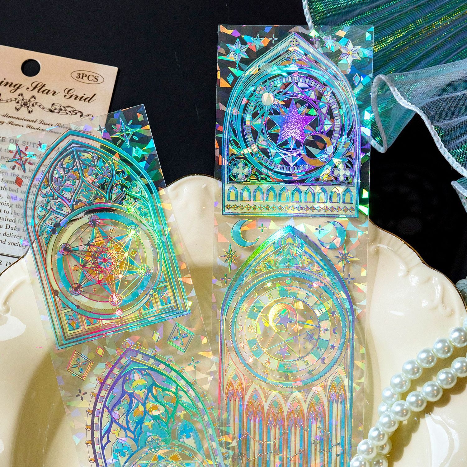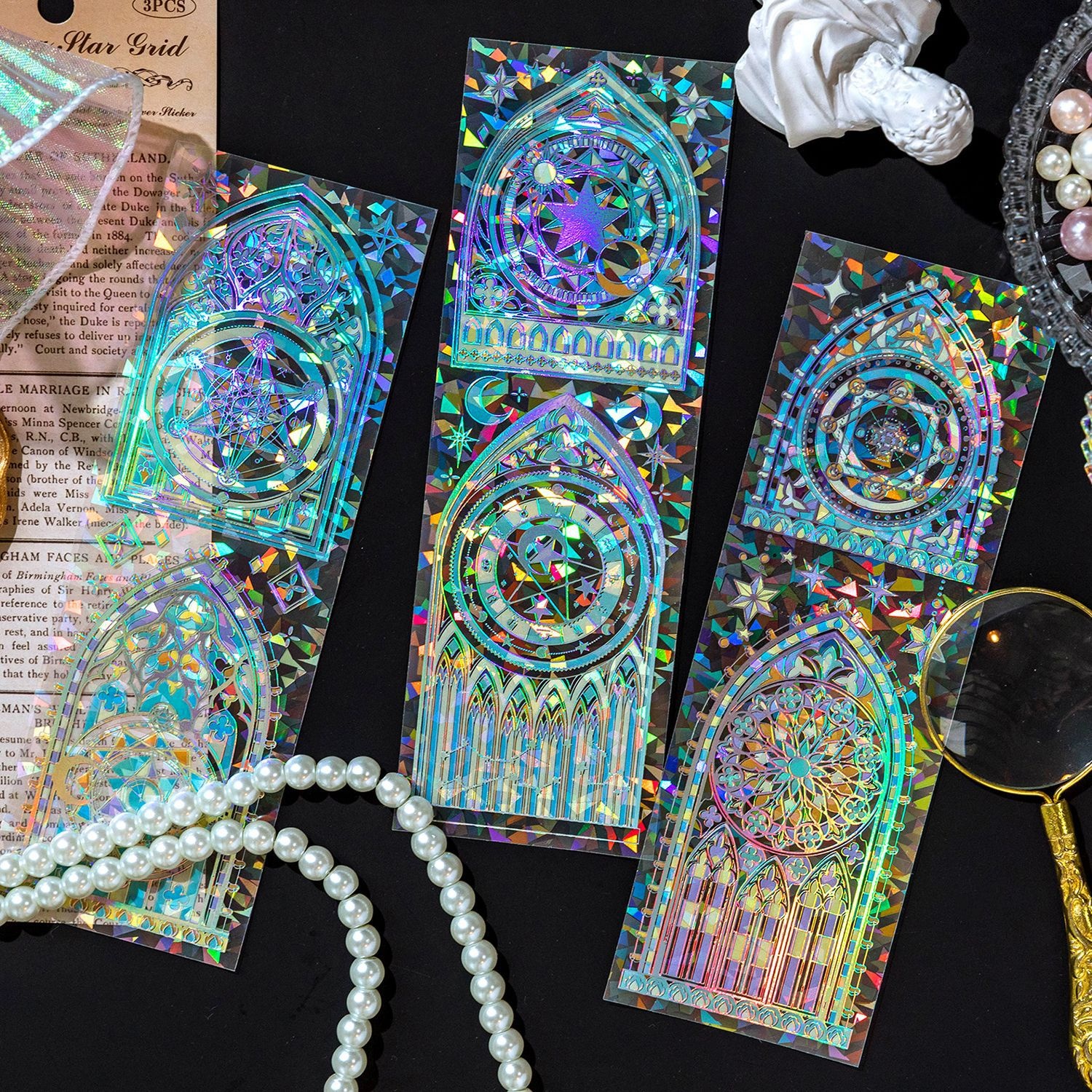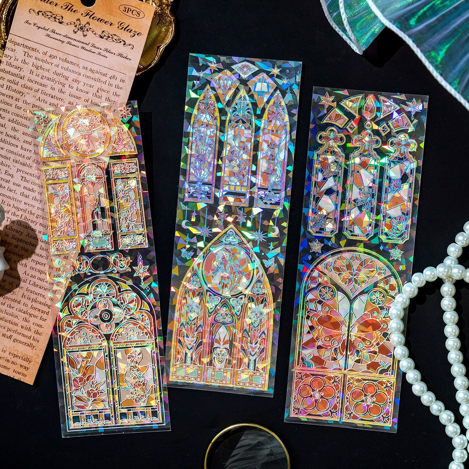 Momo Flowing Flower Window Series PETFlat Sticker Retro Gold-stamped Flower Window Handbook Collage Base Material