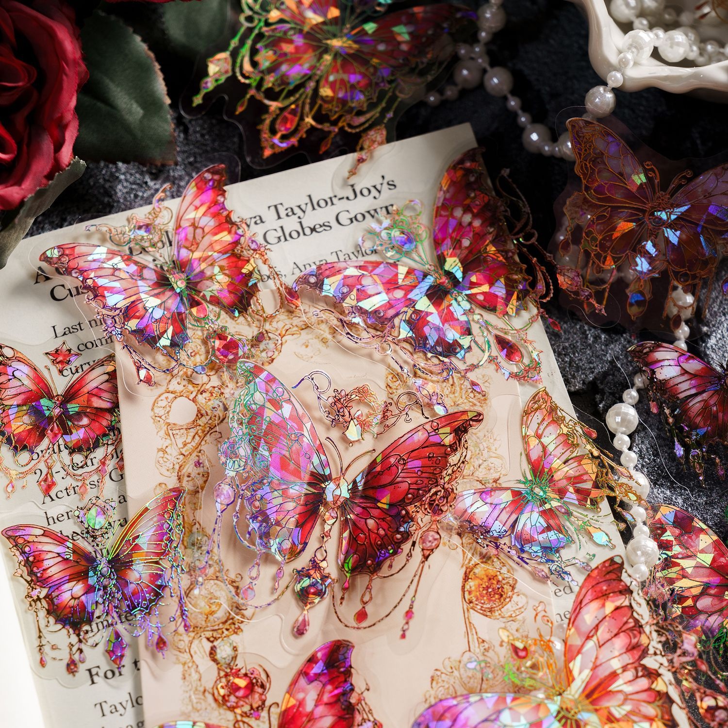 Momo Unbounded Butterfly Language Series PETSticker Pack Retro Laser Stamping Butterfly Handbook Card Decoration Material Sticker
