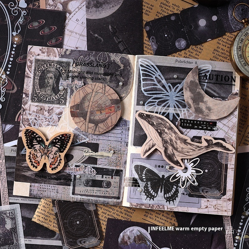 Infeel.me Material Pack Changfeng Messenger Series Retro Butterfly Plant Flower Notebook Sticker Material4 Types