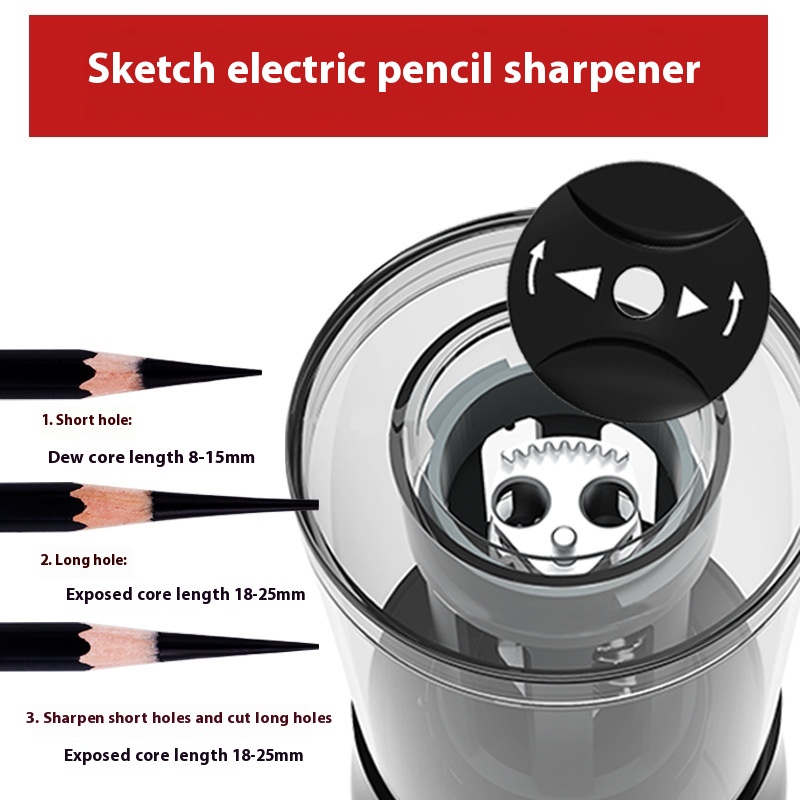 Astronomy Sketch Double Hole Electric Pencil Sharpener Drawing Charcoal Pen Tip Length Three-speed Adjustable Semi-automatic Pencil Sharpener