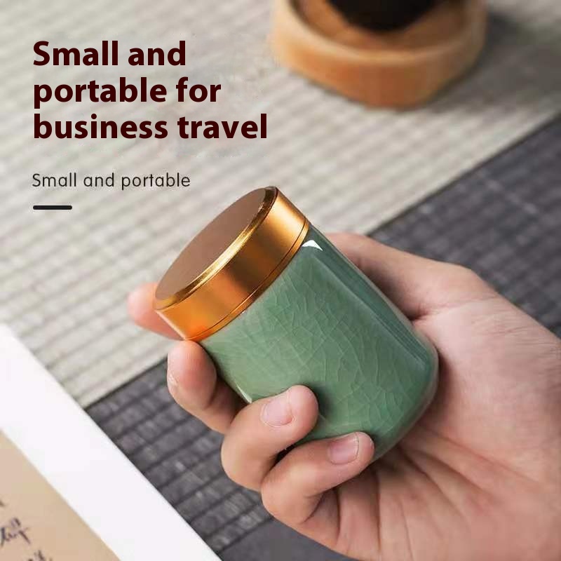 Kongshan Xinyu Longquan Celadon Tea Can Small Portable Sealed Can Ceramic Moisture-proof Mini Storage Small Tea Can