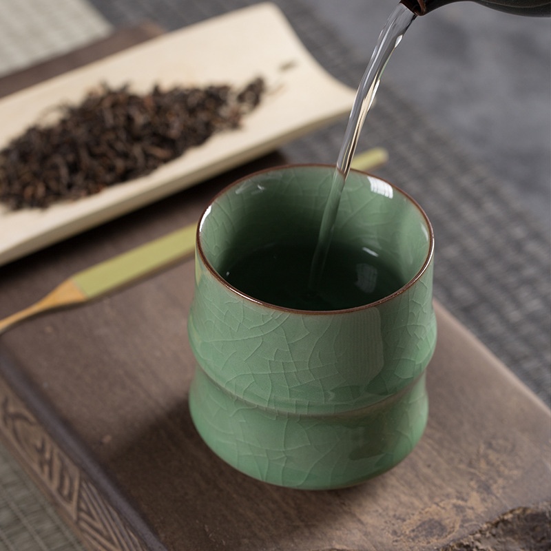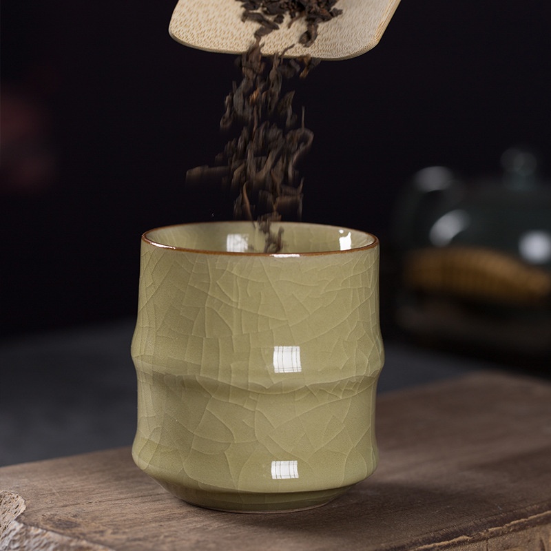 Longquan Celadon Six-color Bamboo Cup Ceramic Ge Kiln Cracked Tea Cup Home Hospitality Cup Office Gift Water Cup