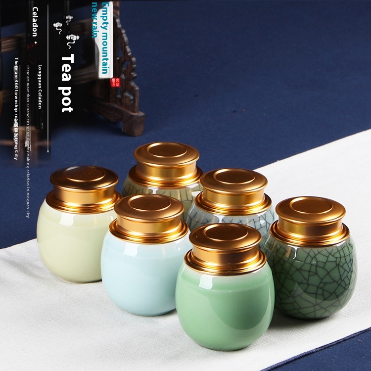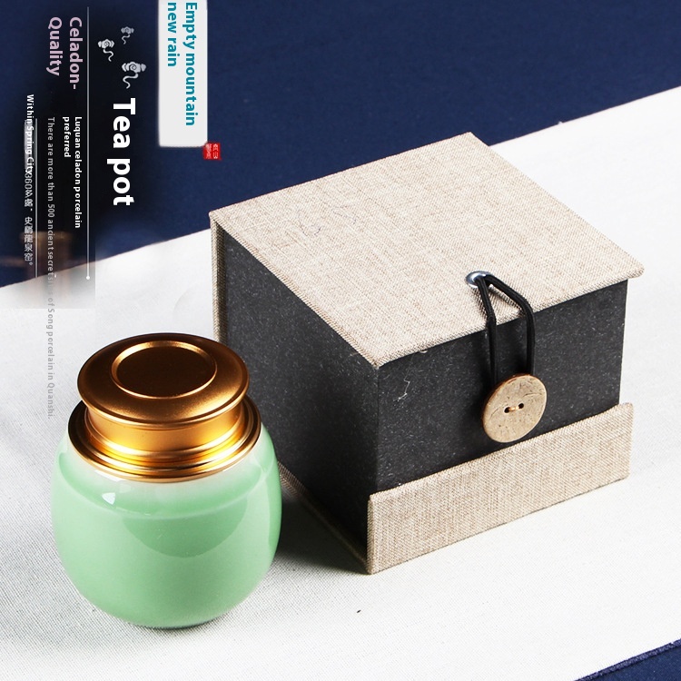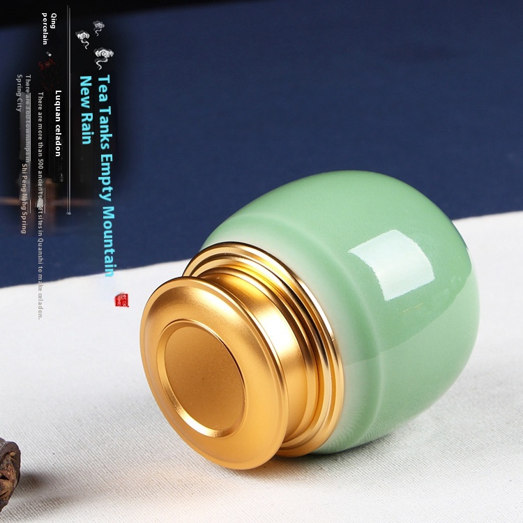 Kongshan Xinyu Longquan Celadon Portable Travel Sealed Tea Can Small Mini Ceramic Tea Storage Can