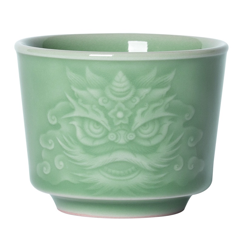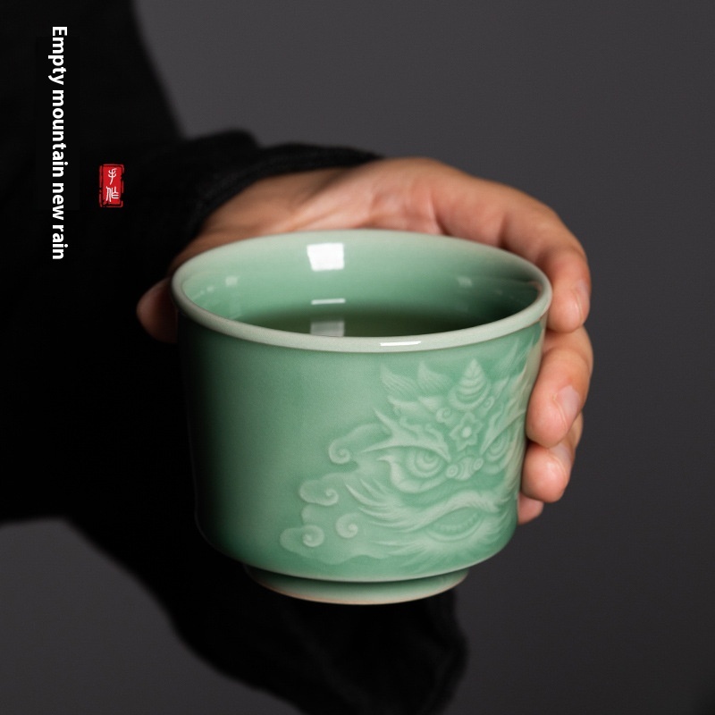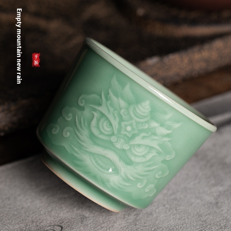 Empty Mountain Rain Longquan Celadon Handmade Lion Awakening Master Cup Ceramic Personal Items Tea Cup Kung Fu Tea Cup Teacup