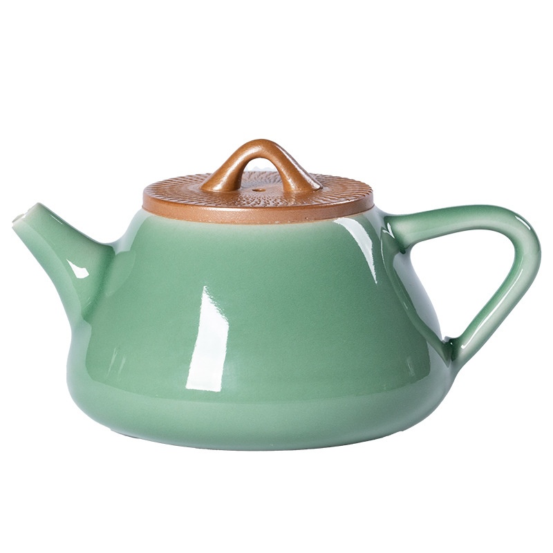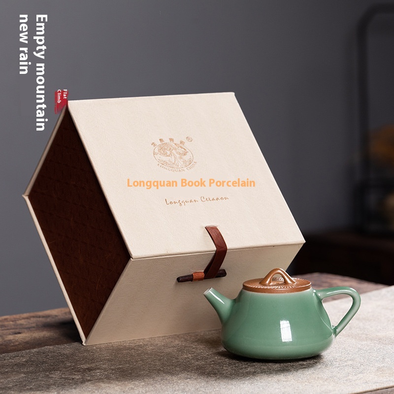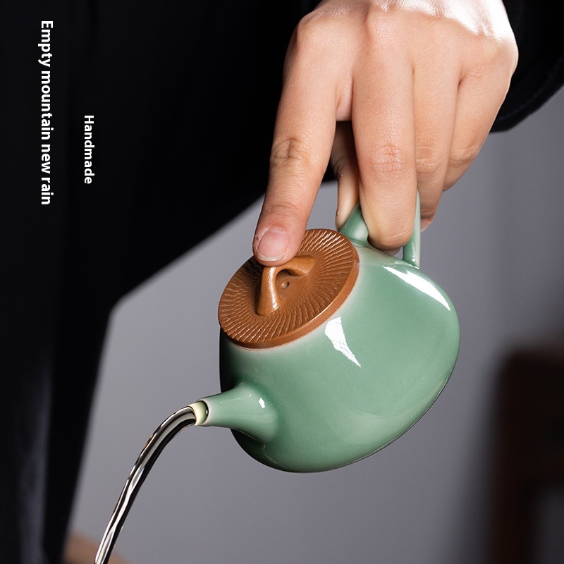 Empty Mountain Rain Jumping Knife Ore Handmade Teapot Longquan Celadon Household High-end Kung Fu Tea Set Ceramic Tea Brewing Single Pot