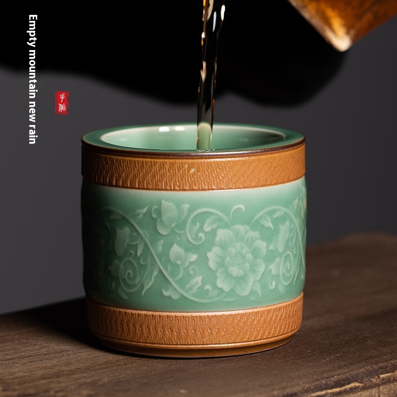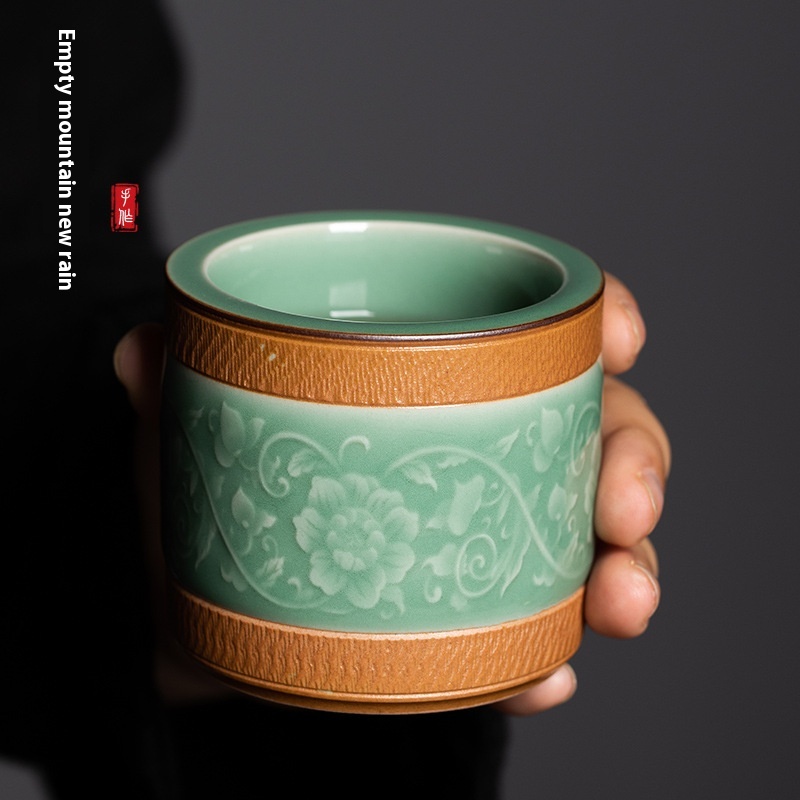 Empty Mountain Rain Longquan Celadon Creative Handmade Jumping Knife Twining Branch Ring Master Cup Ceramic Kung Fu Tea Cup