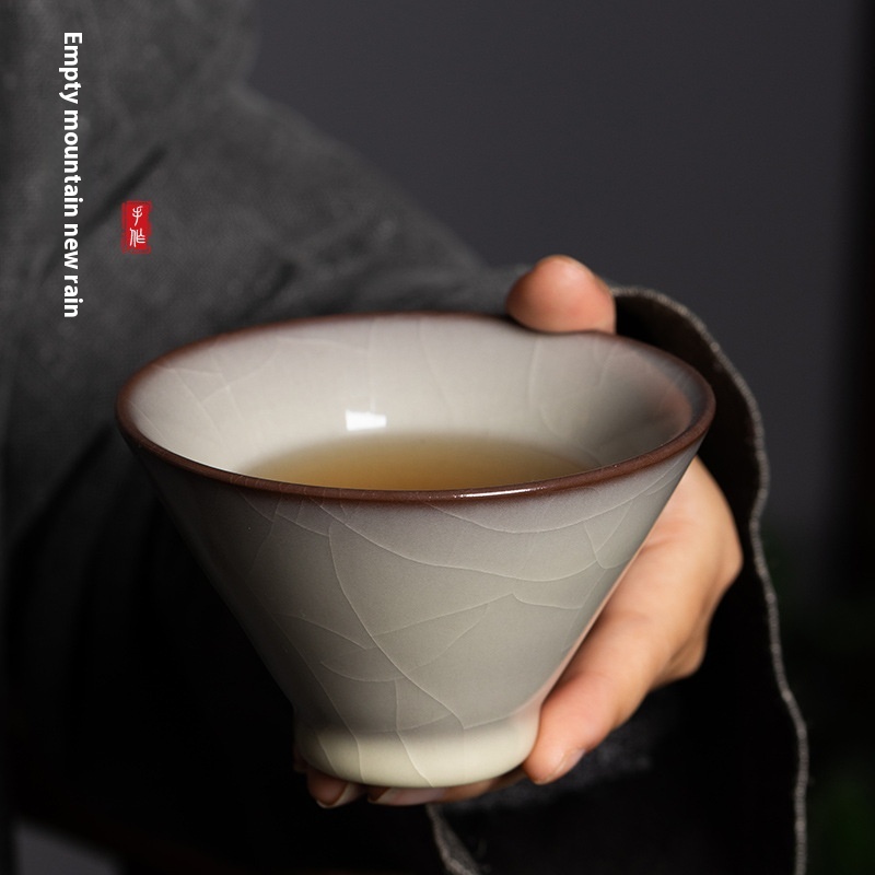 Empty Mountain Rain Longquan Celadon Lard Jelly Master Cup Tea Cup Ceramic Ice Crack High-end Kung Fu Tea Cup Teacup
