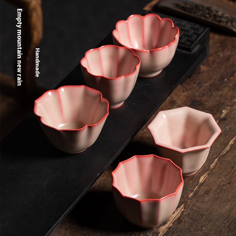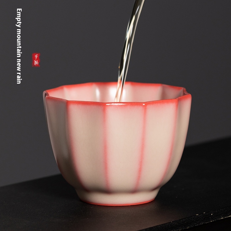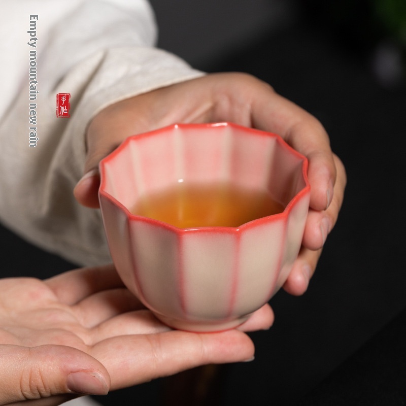 Empty Mountain Rain Longquan Celadon Handmade Master Cup Lard Jelly Kung Fu Tea Cup Ceramic Red Petal Tea Cup