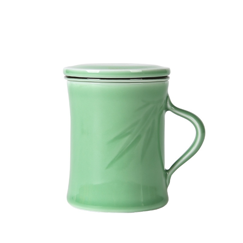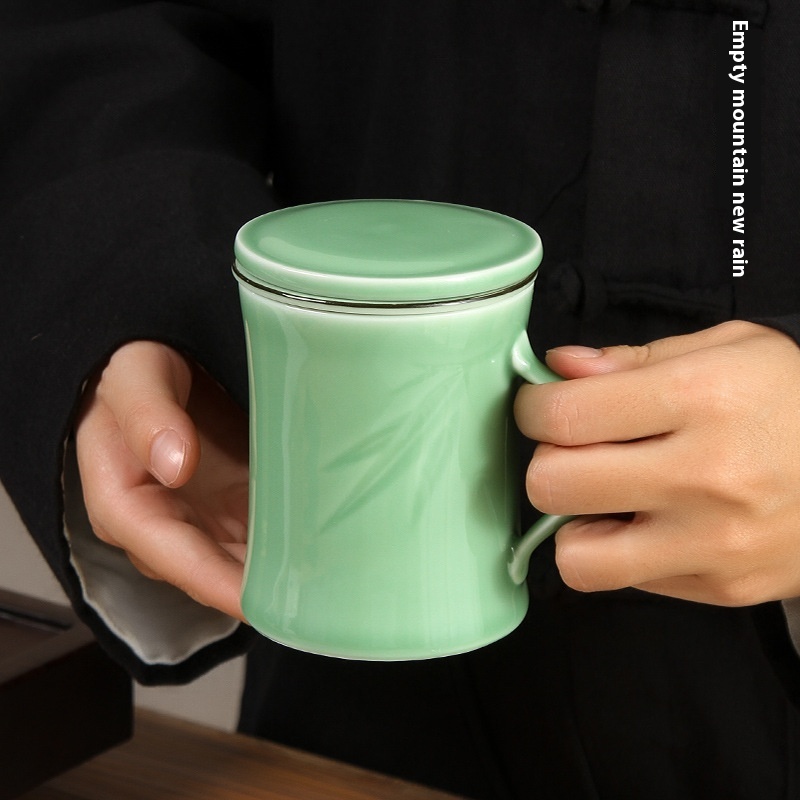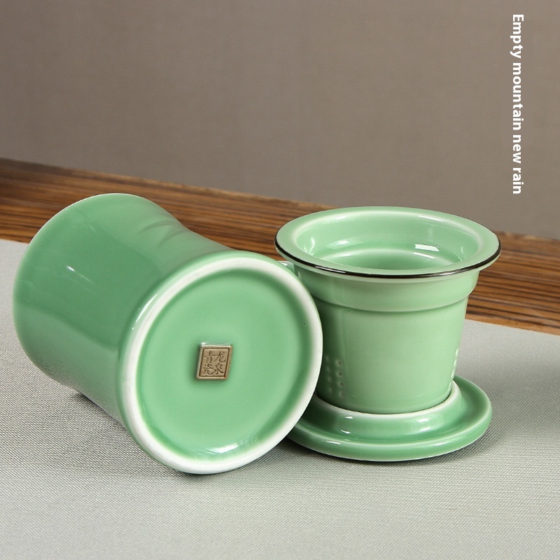 Empty Mountain Rain Creative Longquan Celadon Chinese Tea Water Separation Tea Cup Ceramic Filter Tea Cup Engraving