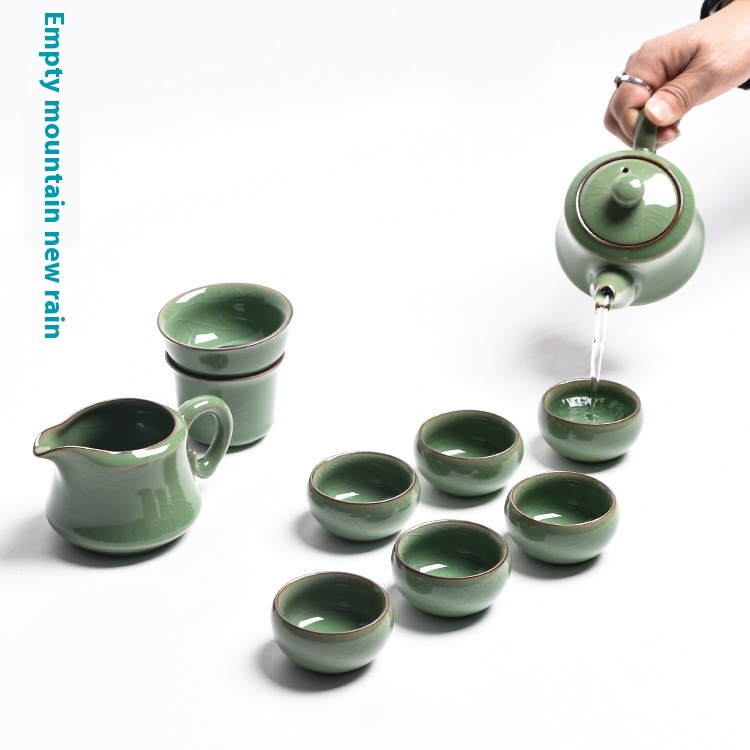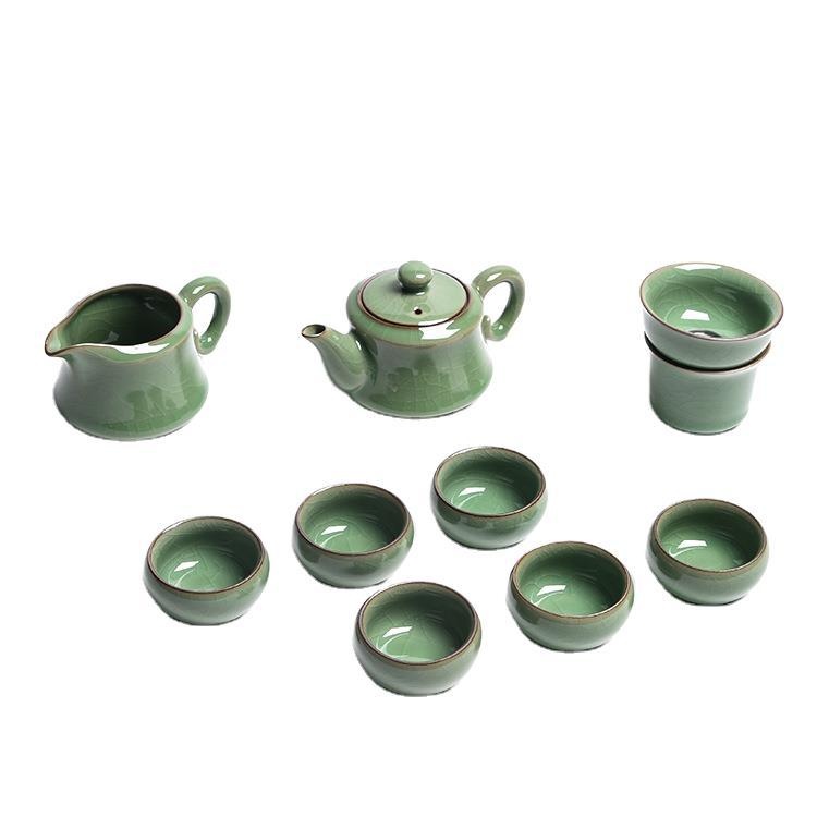Longquan Celadon Tea Set Ge Kiln Cracked Ice Crack Ceramic Tea Set Longquan Kiln10 Pieces Kung Fu Tea Set Set