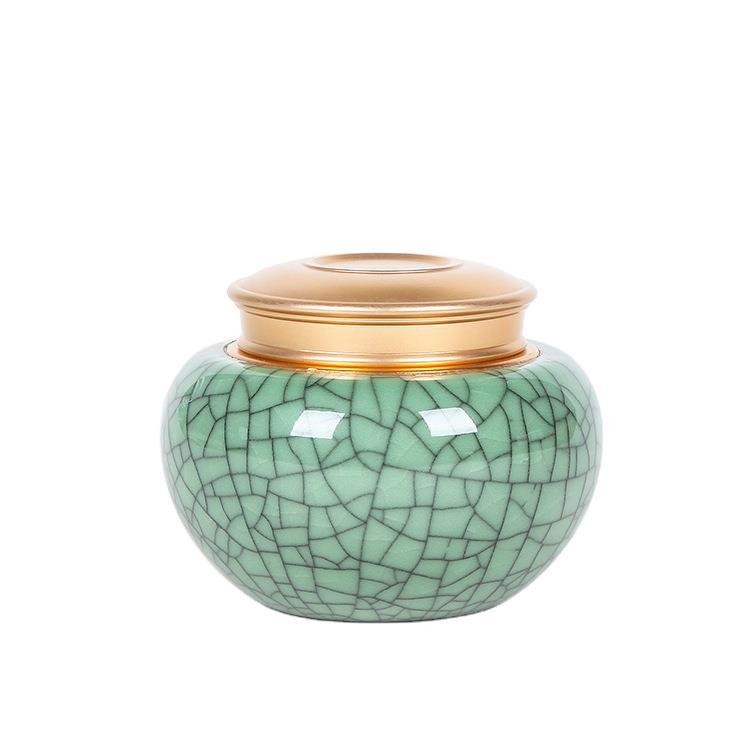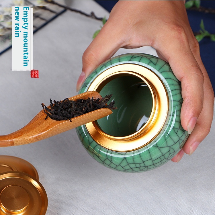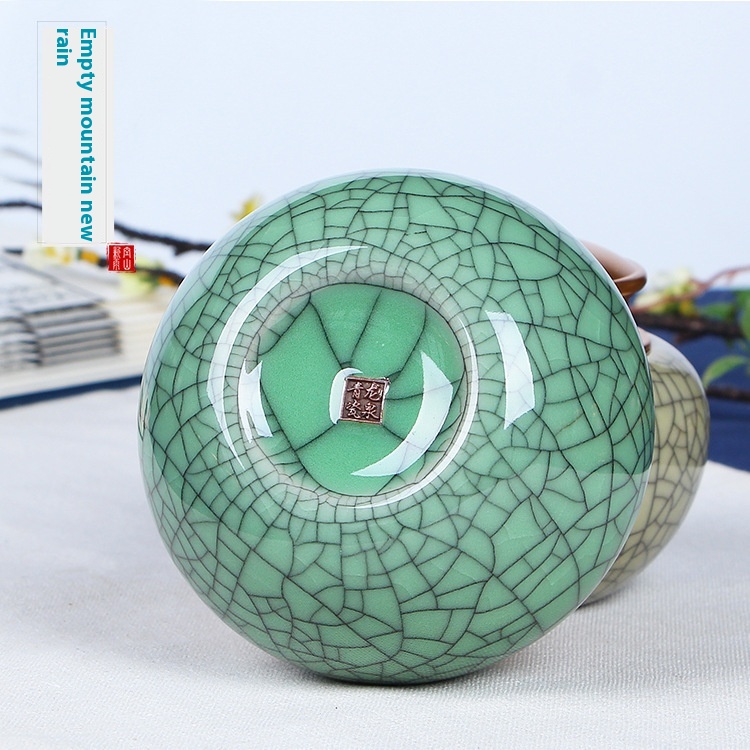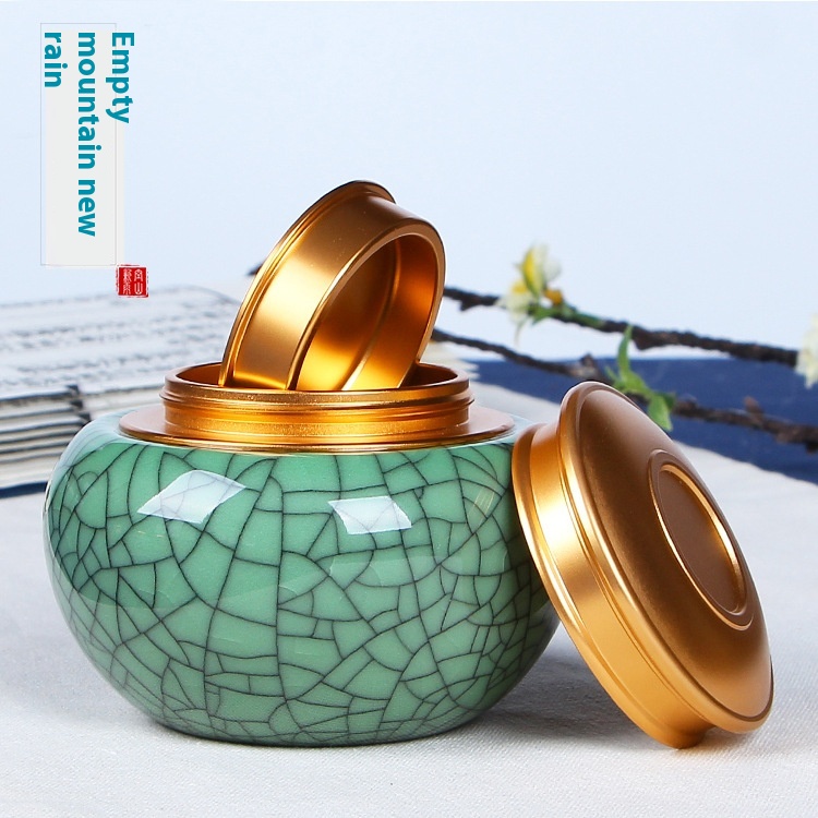 Longquan Celadon Metal Cover Sealed Pu'er Tea Longjing Tea Tea Cans Ceramic Medicinal Materials Packaging Cans