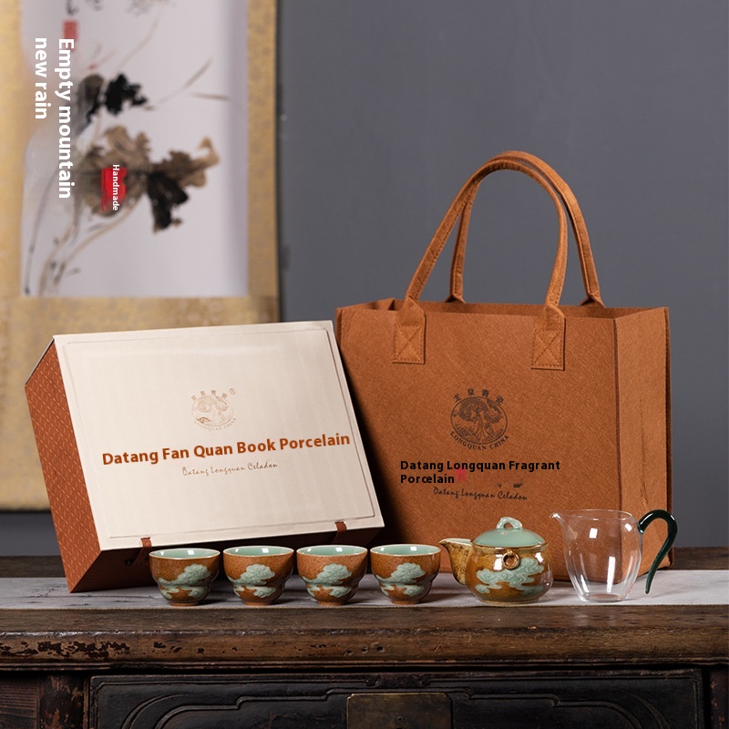 Kongshan Xinyu Longquan Celadon Kungfu Tea Set Hand-held Teapot Teacup Complete Set Of Ceramic Handmade Tea Set