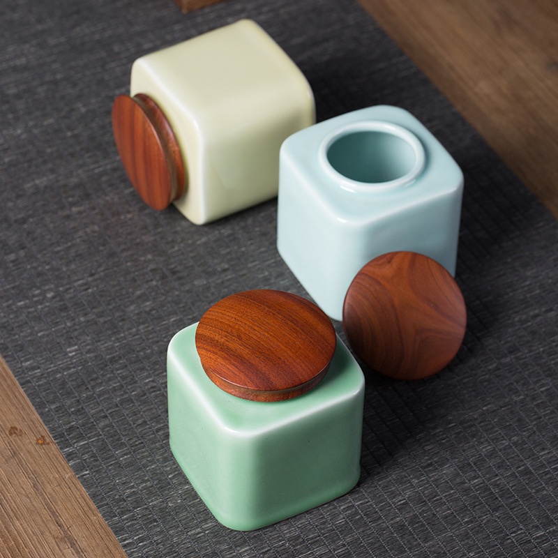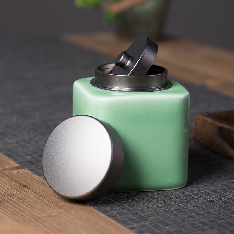 Empty Mountain Rain Creative Longquan Celadon Ge Kiln Ice Crack Medium Universal Tea Can Ceramic Sealed Jar