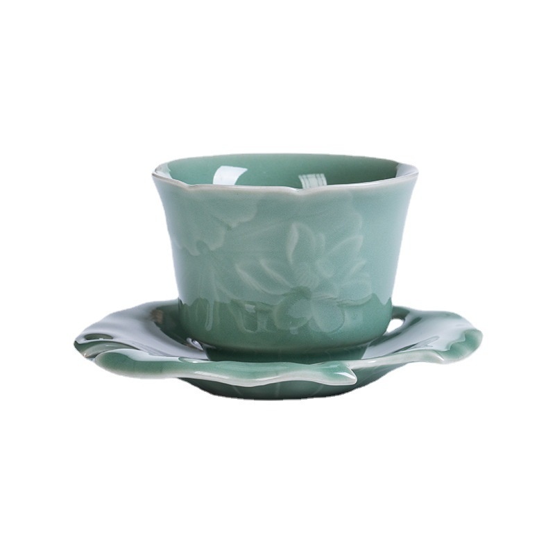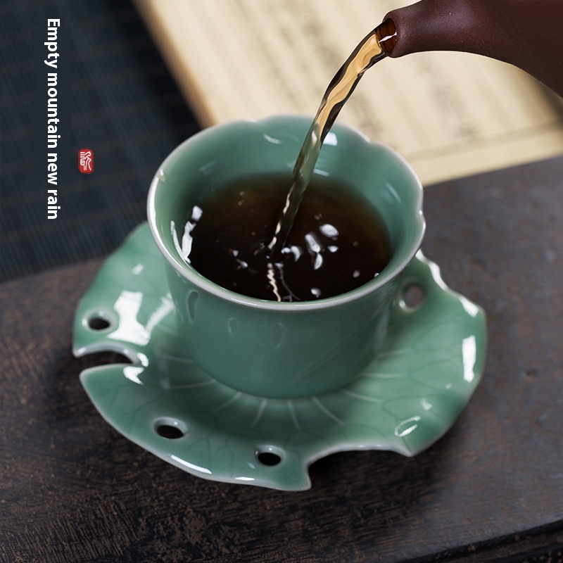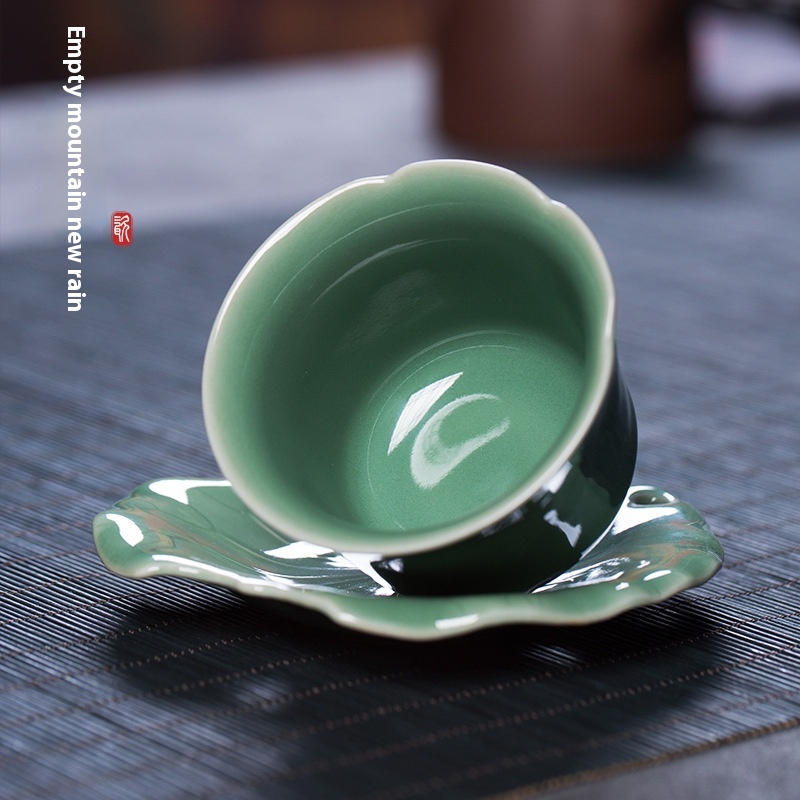 Empty Mountain Rain Longquan Celadon Handmade Lotus With Cup Holder Master Cup Ceramic Kung Fu Tea Cup Single Cup Tea Cup