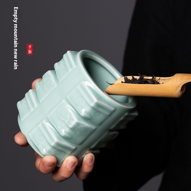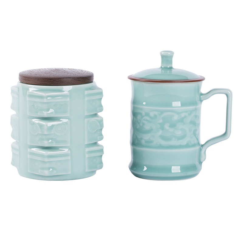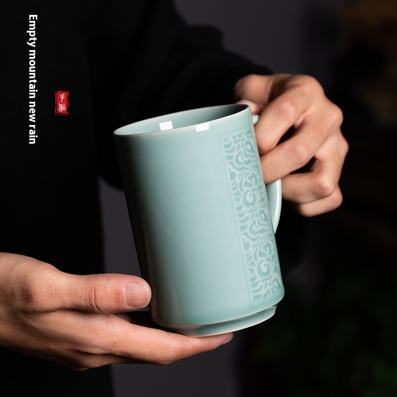 Empty Mountain Rain Longquan Celadon Office Home Retro Tea Cup Ceramic Chinese Porcelain Cup Tea Can Set