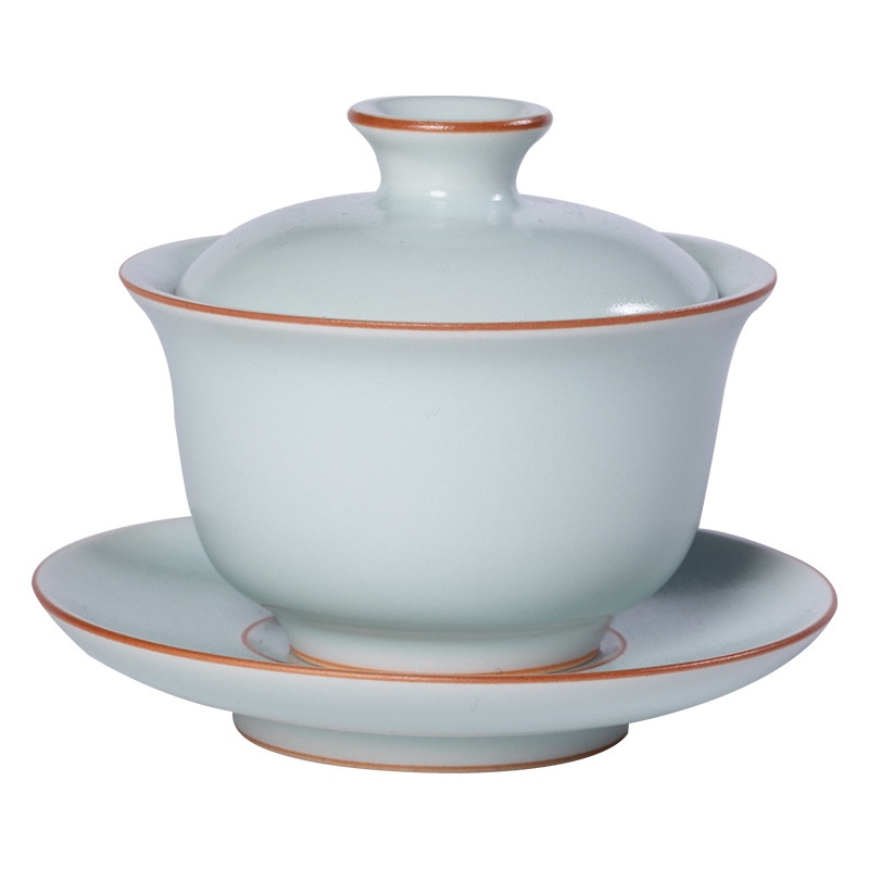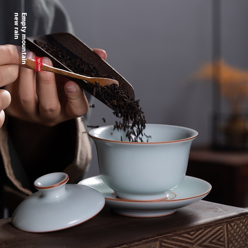 Empty Mountain Rain Longquan Celadon Sancai Gaiwan Kung Fu Tea Set Tea Bowl Ceramic High-end Pure Handmade Tea Brewing Device