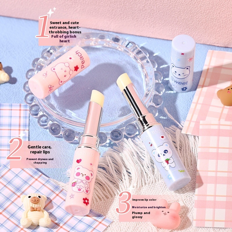 Autumn And Winter Cute Bear Lip Balm Moisturizing And Hydrating To Reduce Lip Lines Peach Strawberry Flavor Lip Balm