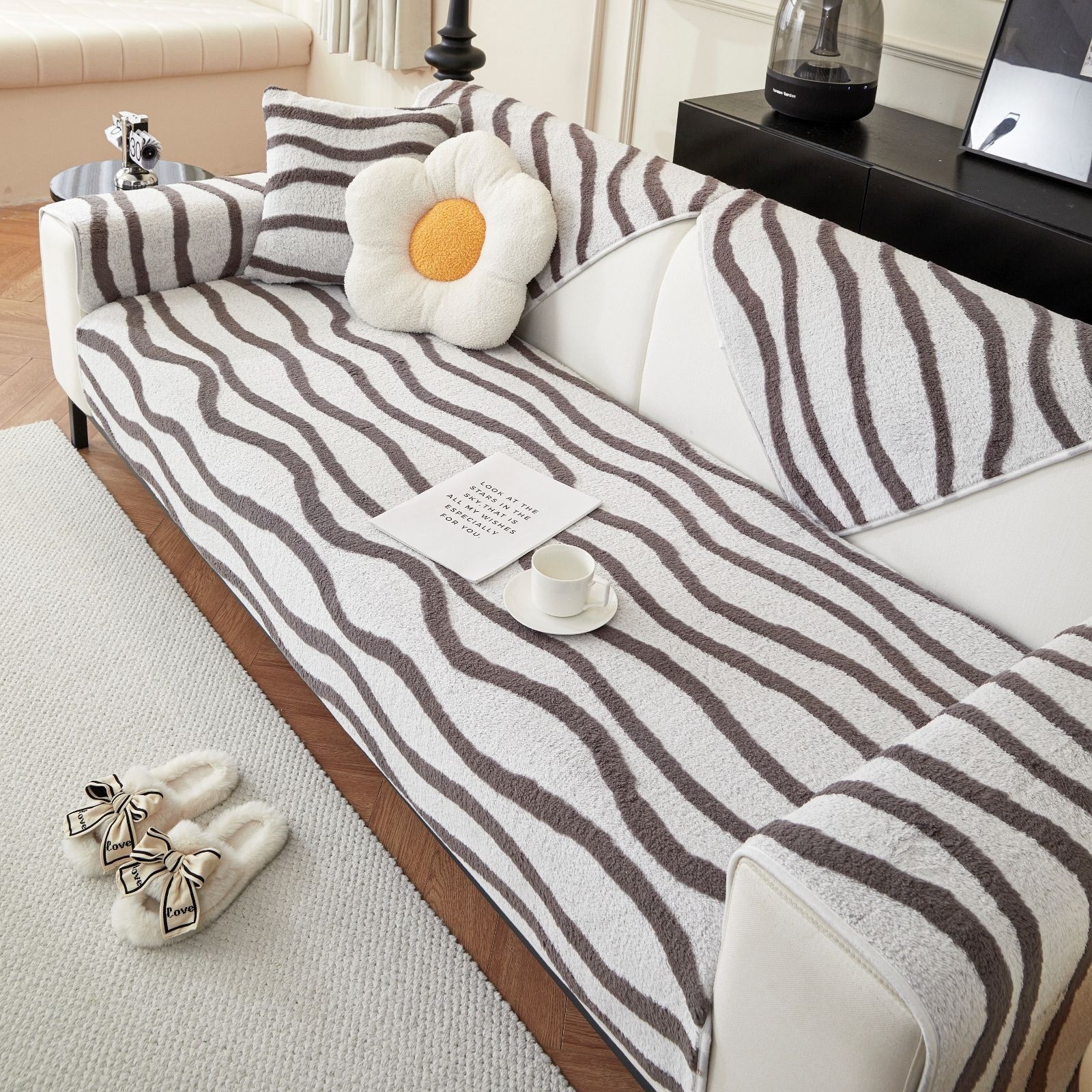 Style Skin-friendly Plush Sofa Cushion Anti-cat Scratch Leather Sofa Cover Towel Non-slip Fabric Cream Style Fashionable Home