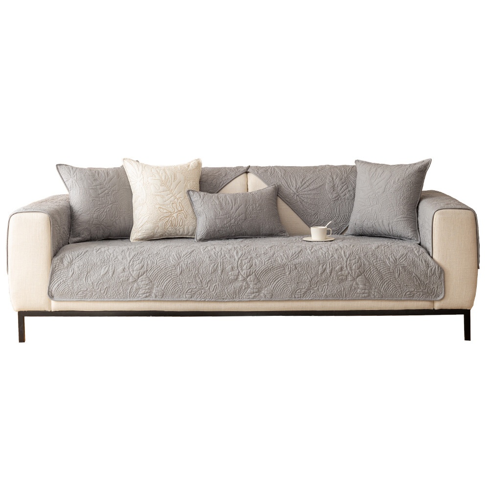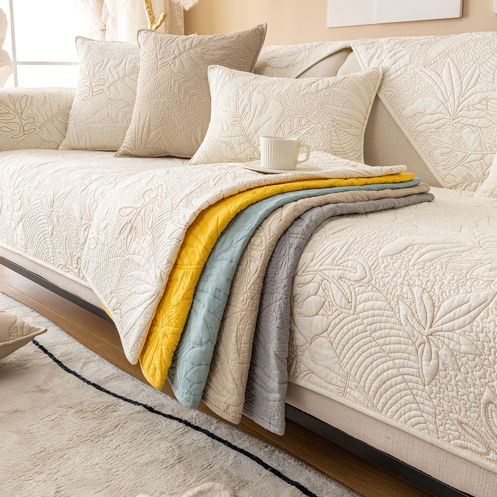Four Seasons Universal Fabric Embroidery Non-slip Pure Cotton Sofa Cushion Modern Simple Solid Wood Sofa Cushion Cloth Backrest Cover