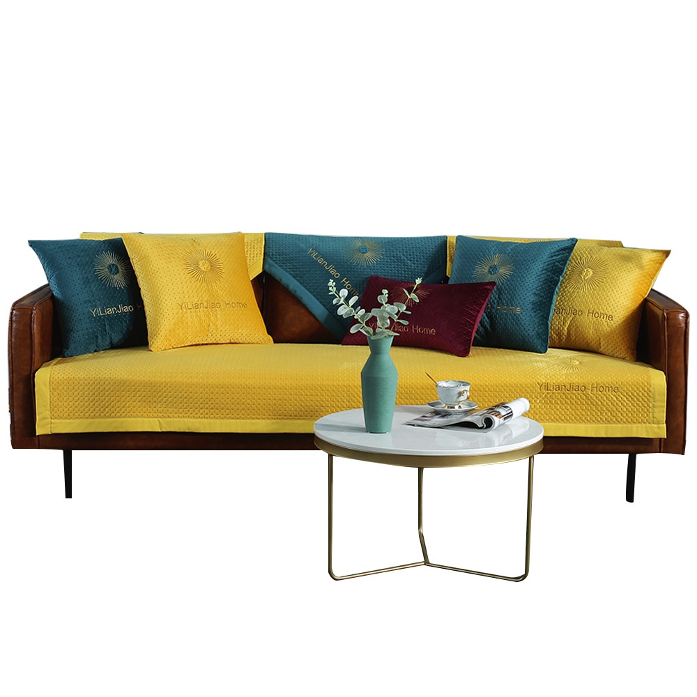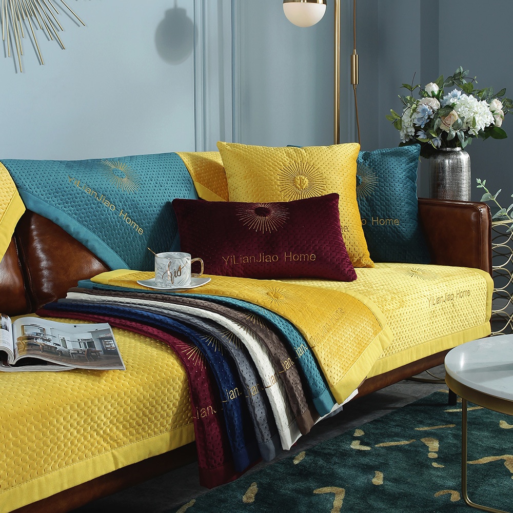 High-end Solid Color Thin Plush Sofa Cushion Modern Simple Autumn And Winter Short Plush Non-slip Sofa Towel Cover