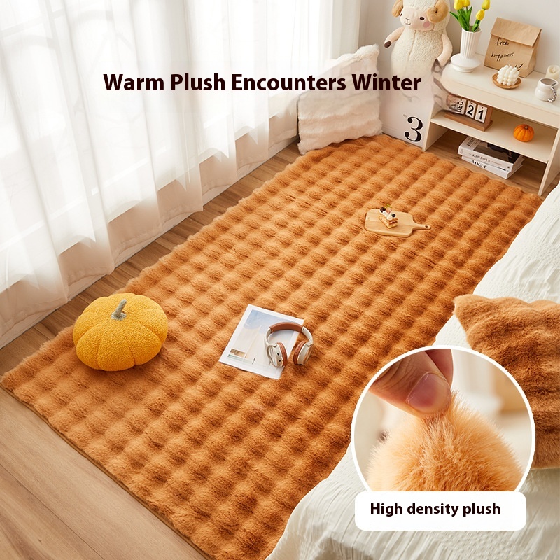Winter Thickened Rabbit Fur Bedside Blanket Bubble Velvet Carpet Living Room Coffee Table Blanket Non-slip Bedroom Tatami Floor Mat