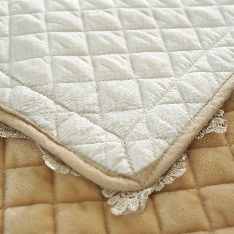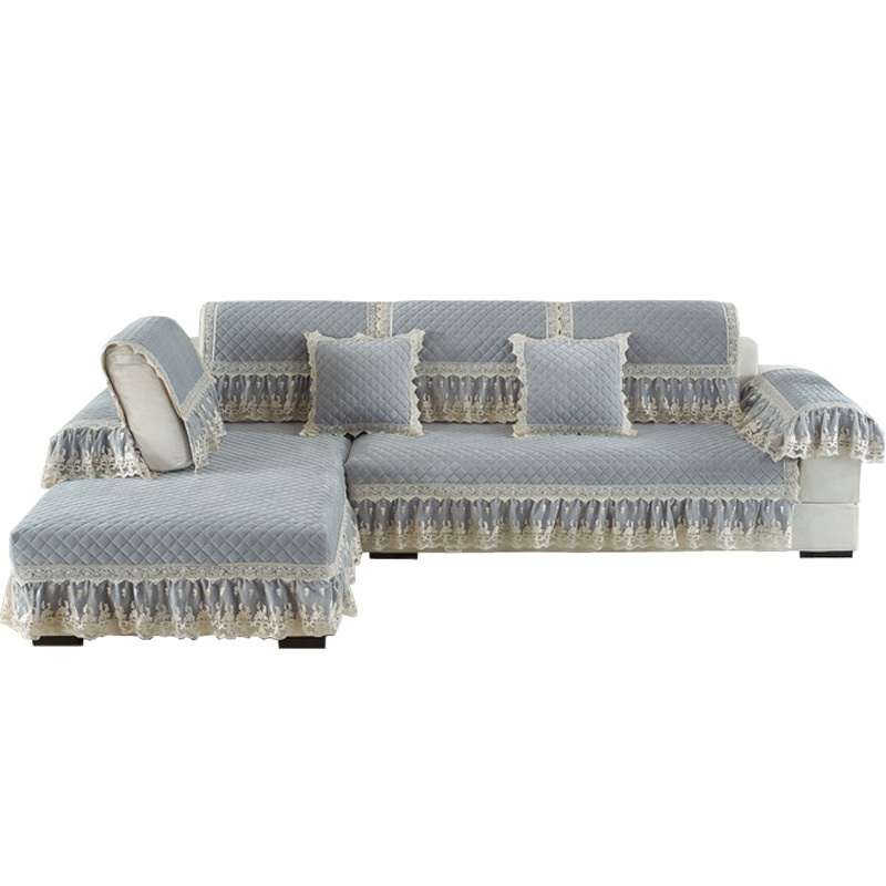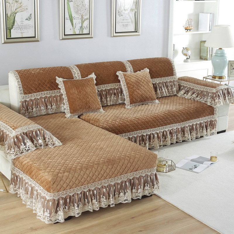 Ultra-soft And Thickened Crystal Velvet Quilted Sofa Towel Cover Solid Color Lace Skirt Non-slip Sofa Cushion S