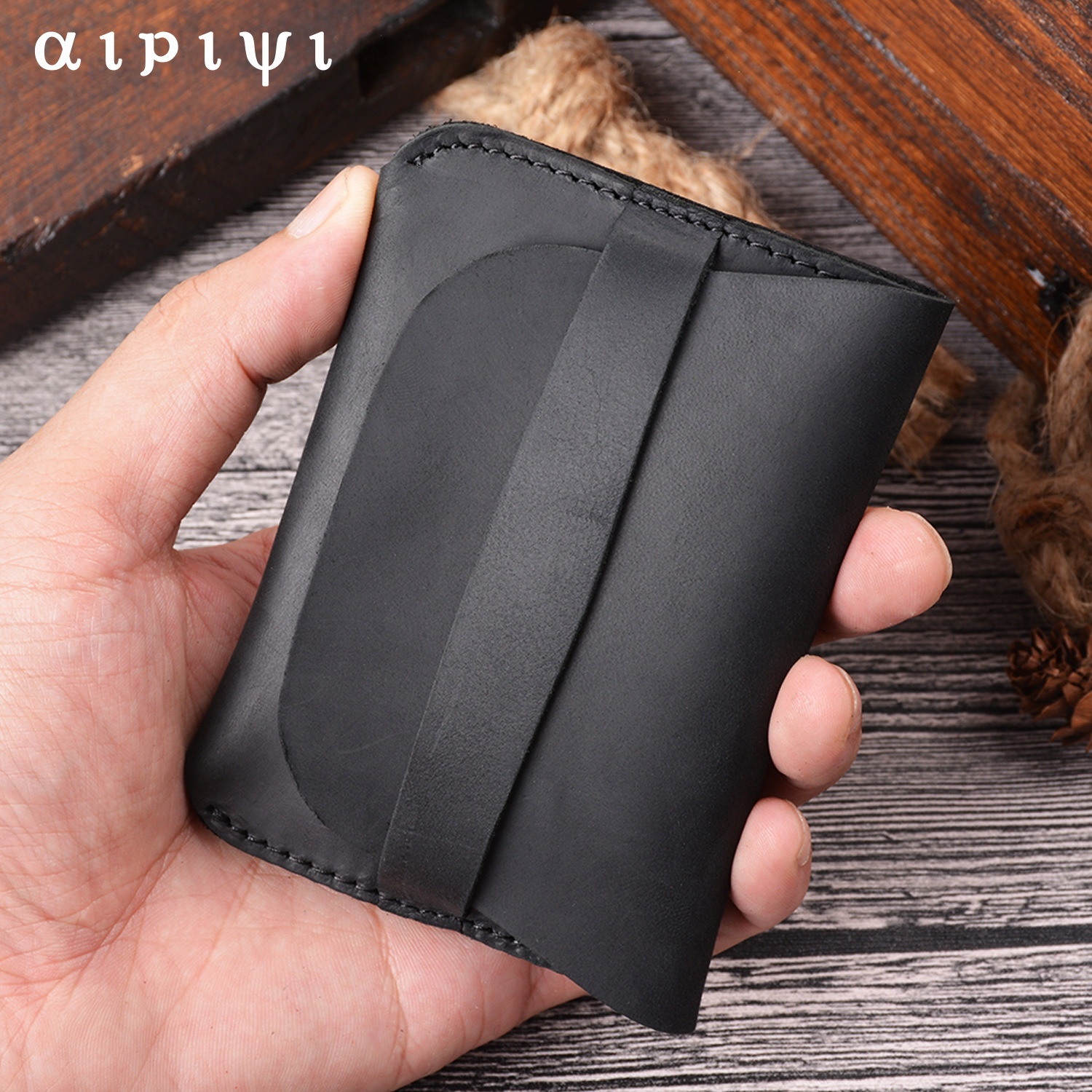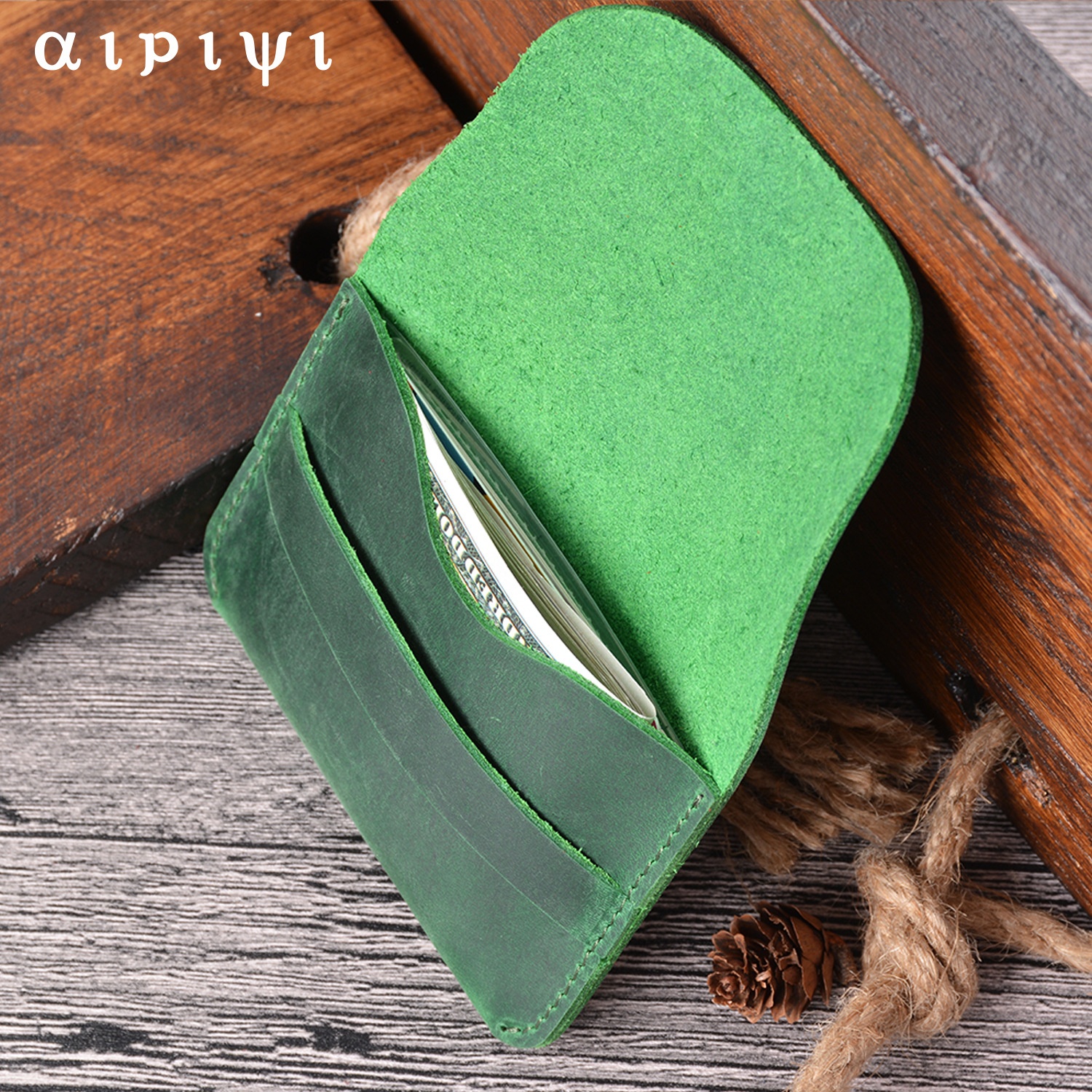 Simple Crazy Horse Leather Creative Retro Casual Cowhide Card Holder Card Holder One Piece Genuine Leather Wallet Storage