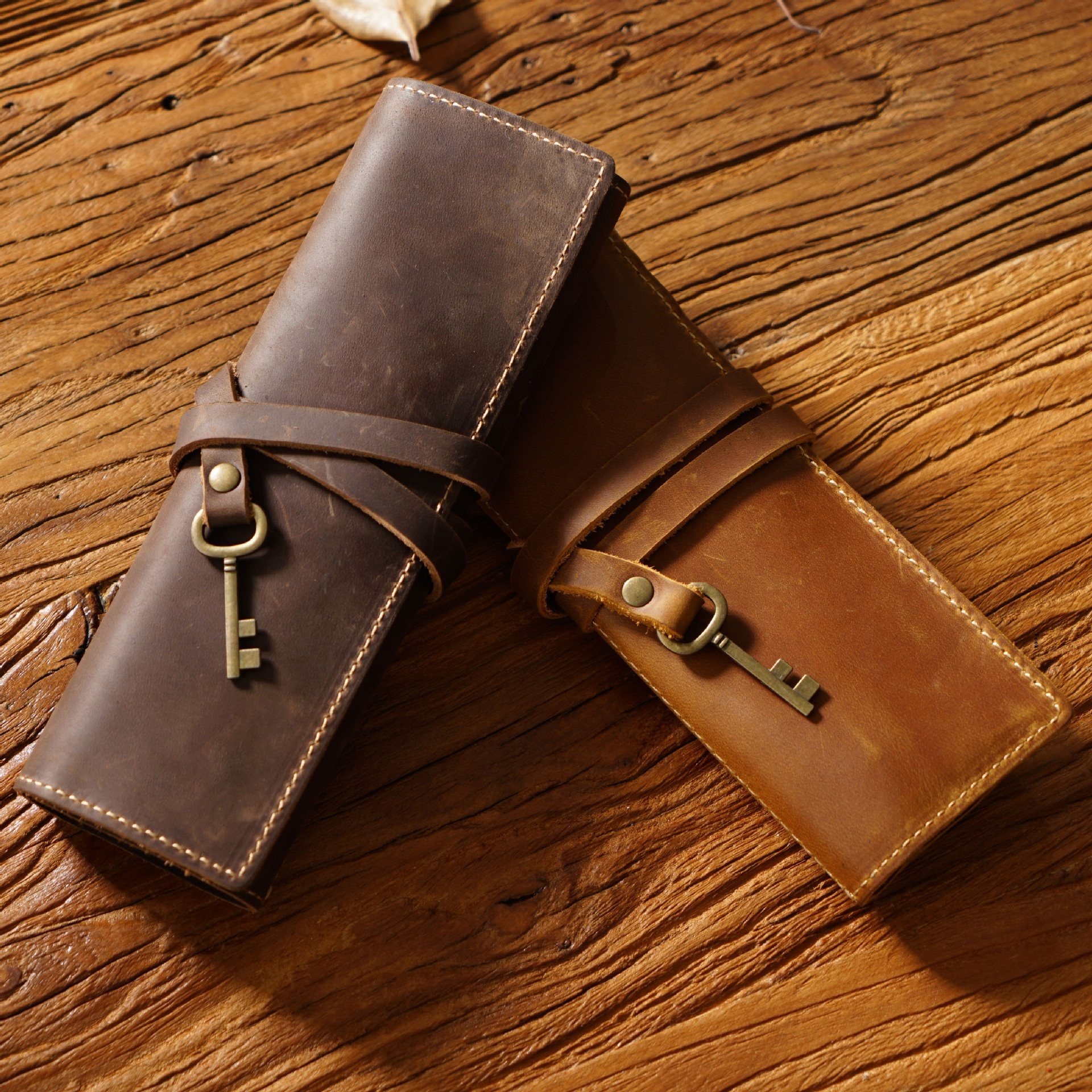 Retro Top Layer Cowhide Pen Curtain Genuine Leather Pen Bag Simple Artistic Pen Curtain Multifunctional Roll Pen Bag