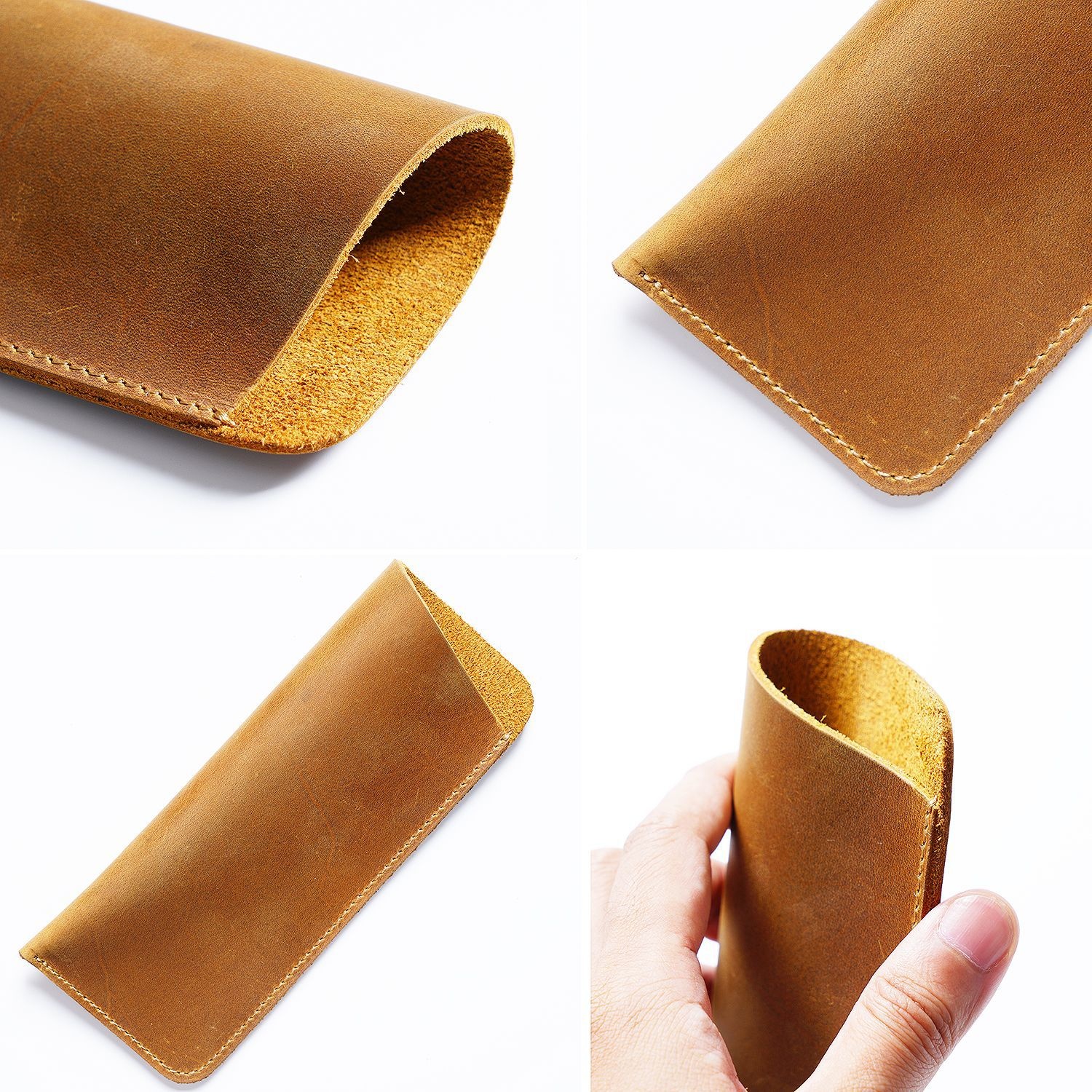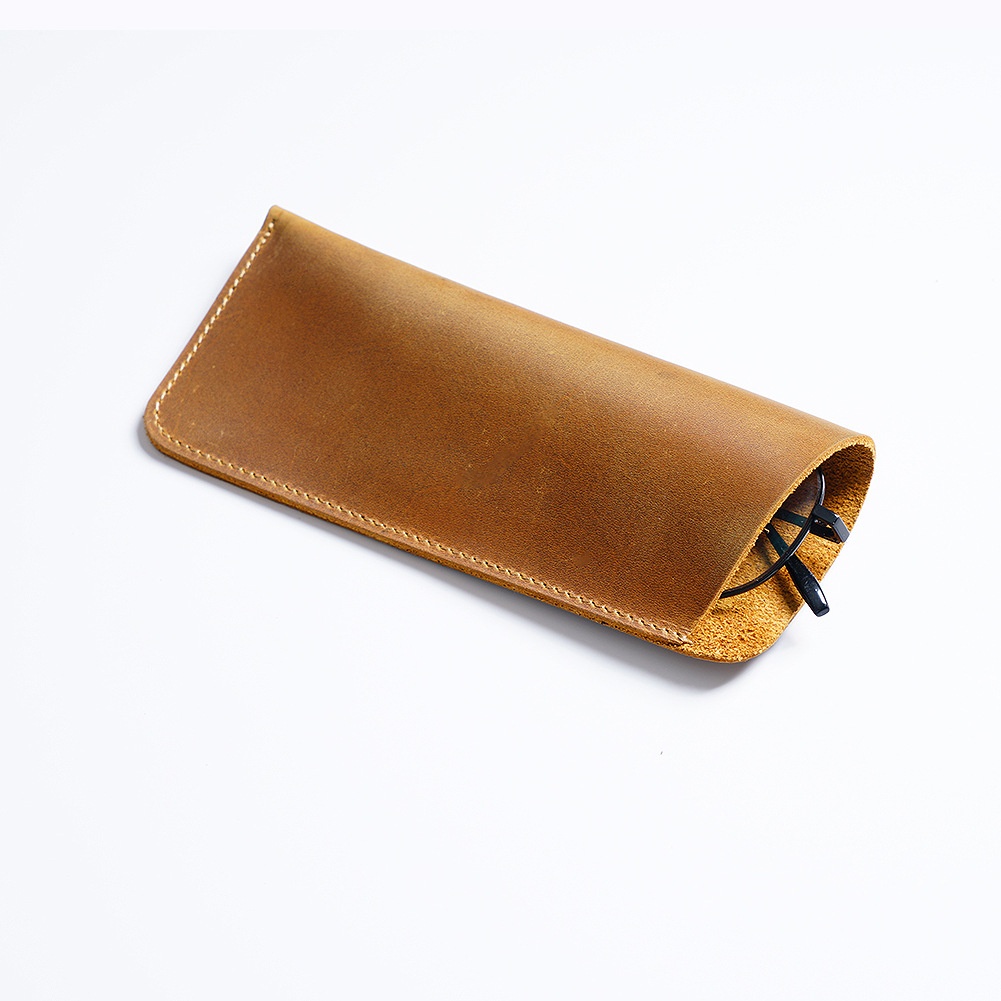 Foreign Trade Retro Crazy Horse Leather Pencil Case Simple Handmade Genuine Leather Small Pen Case Men And Women Portable Storage Glasses Protective Case