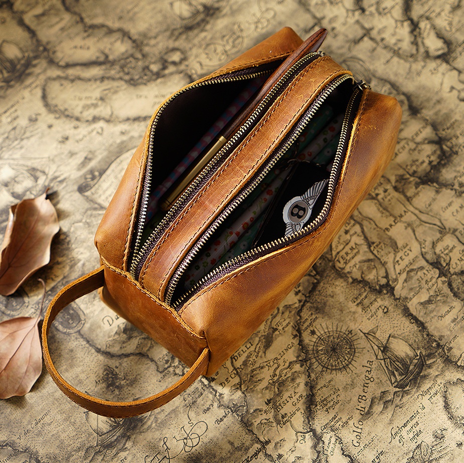 Cowhide Pencil Case Large Capacity Pencil Case Double-layer Pencil Case Boys Pencil Storage Bag Multifunctional Stationery