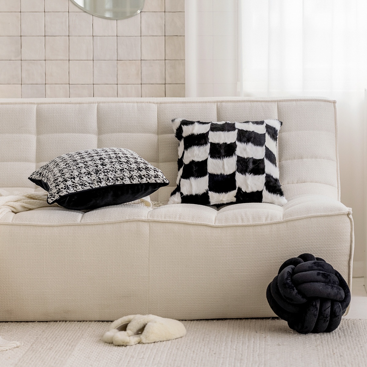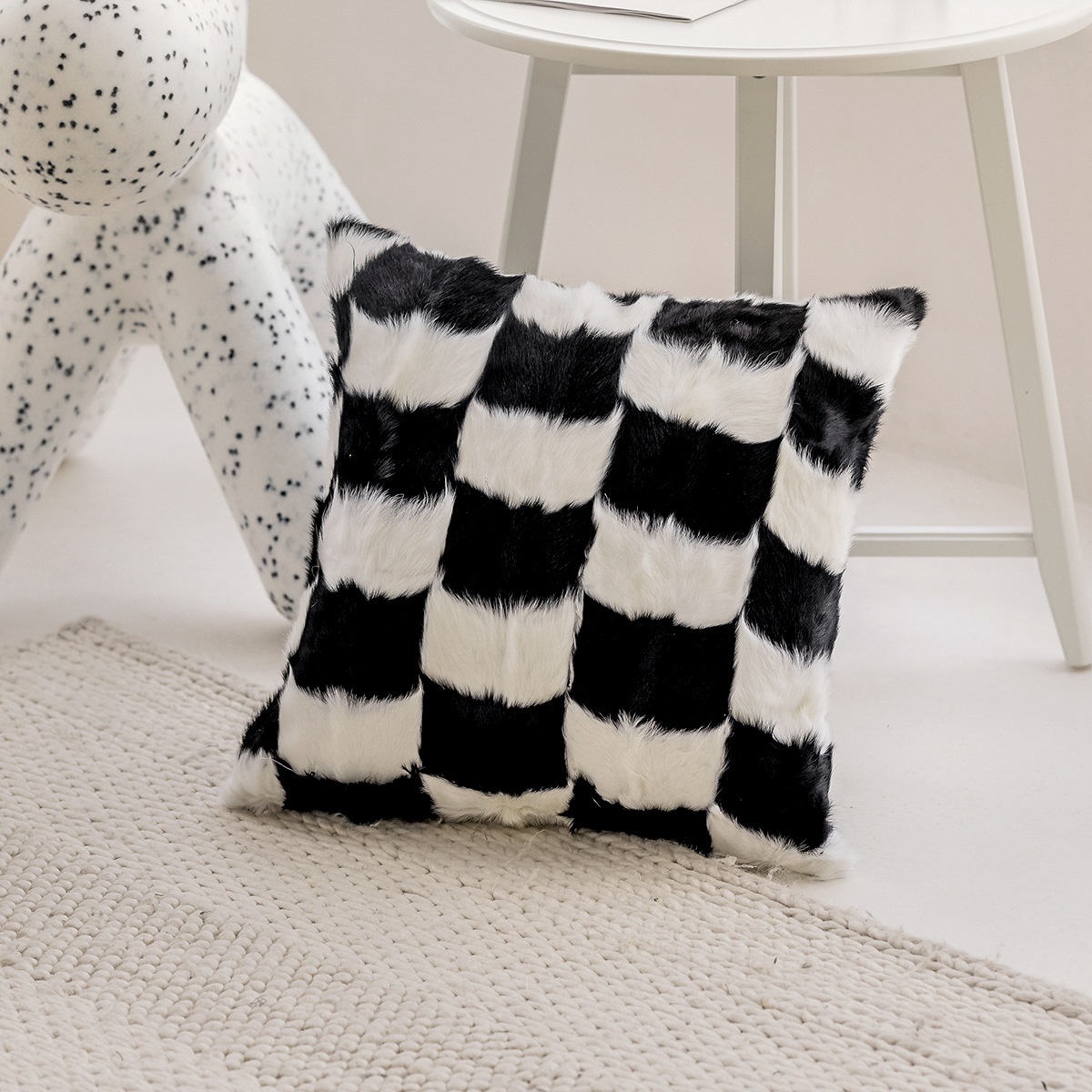 Goat Velvet Sofa Pillow Cover Modern Simple Living Room Decoration Cushion Bedside Cushion Checkerboard Pattern