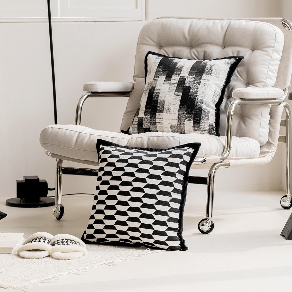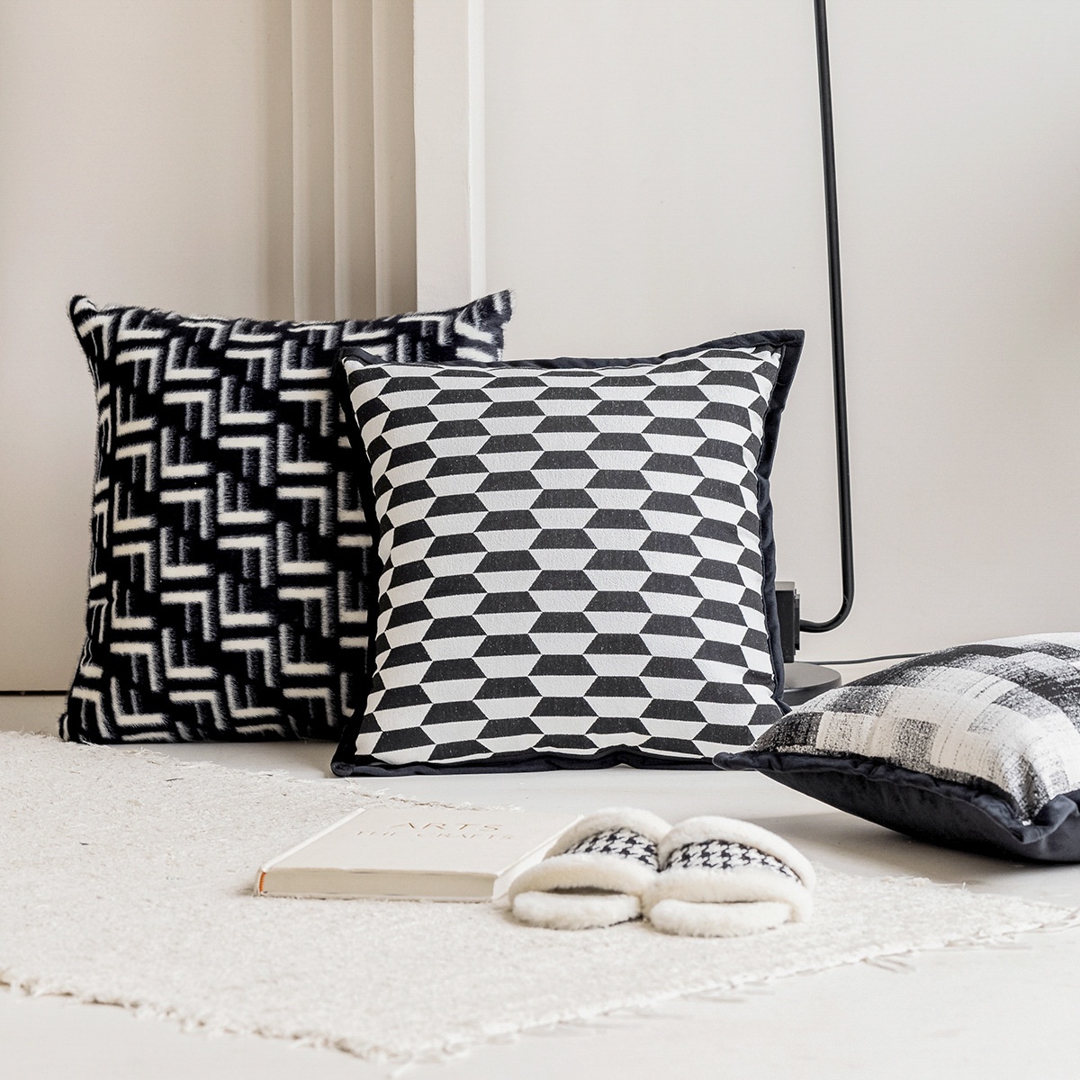 Black Simple Sofa Pillow Case Living Room Bedside Cushion Cushion Soft Bag Bed Waist Backrest