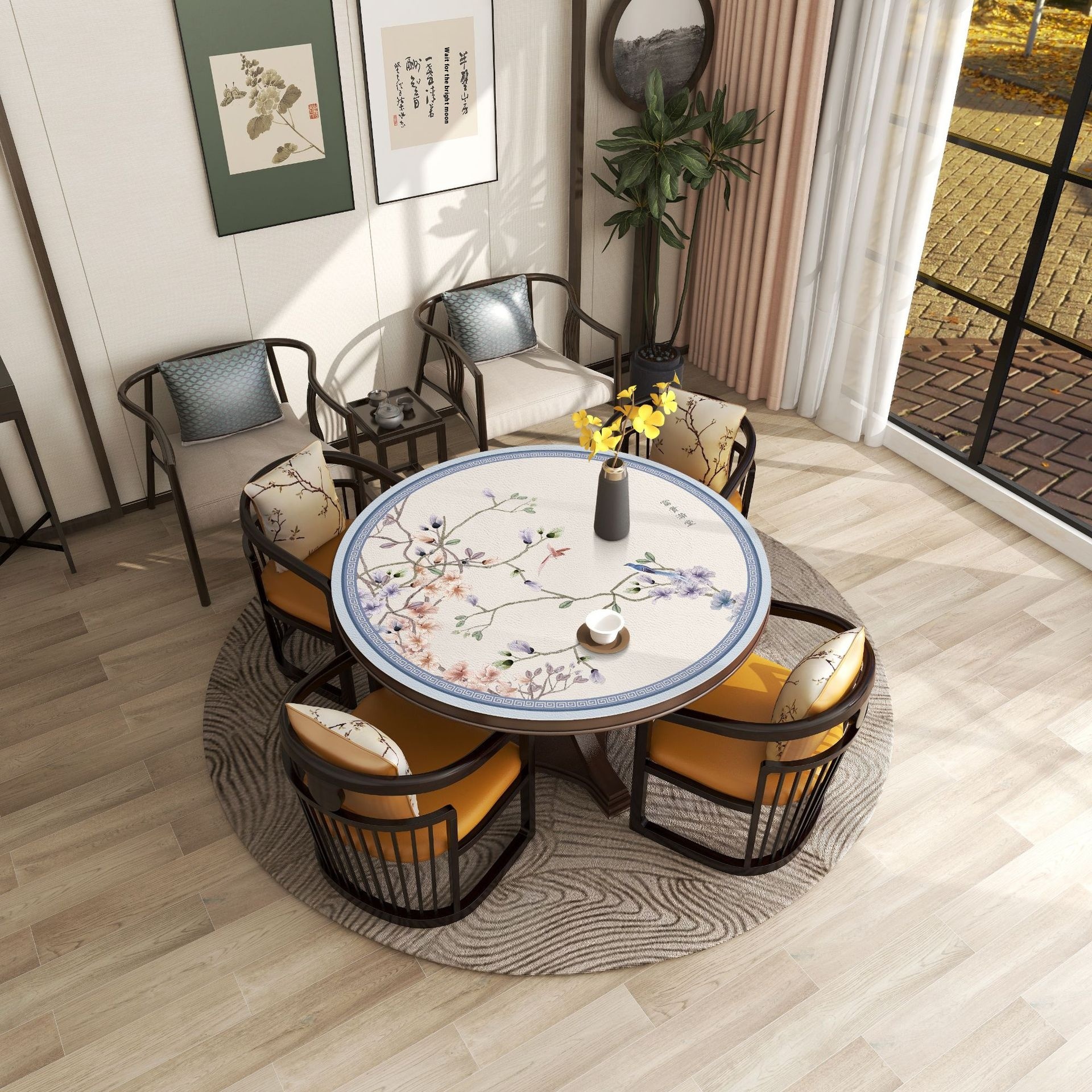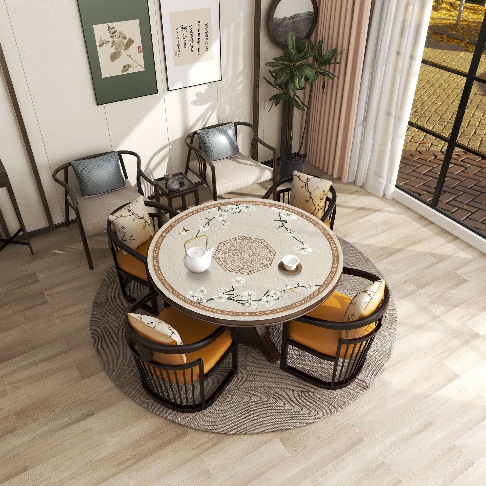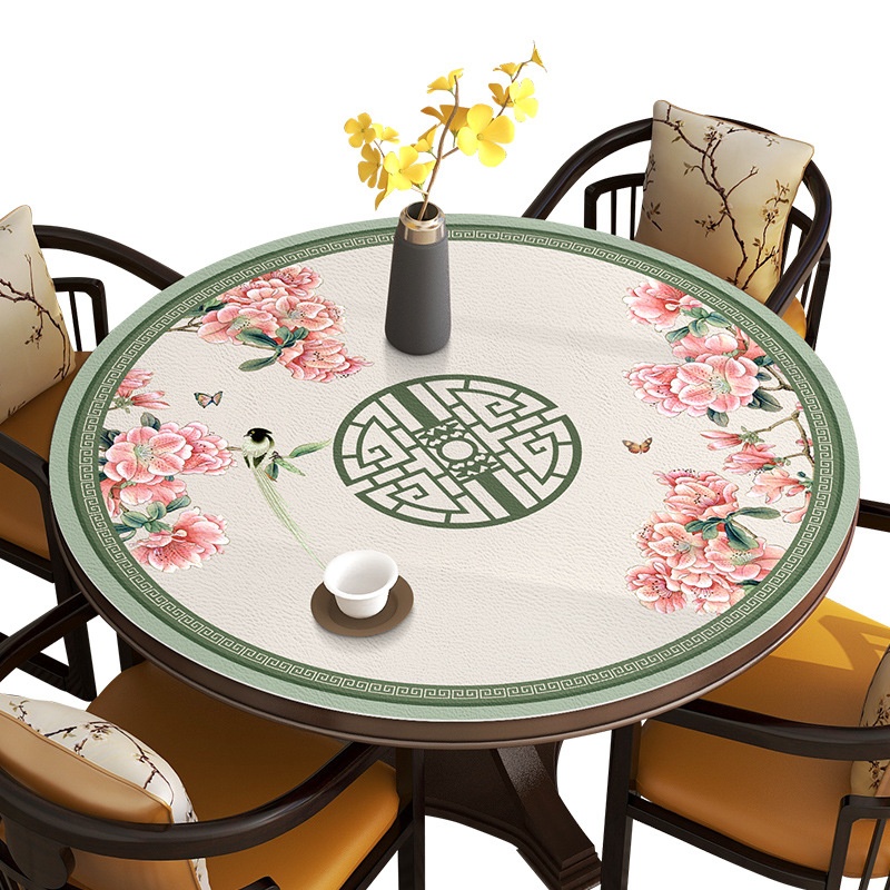 Chinese Style Elegant Leather Round Table Mat Tablecloth Household Waterproof Non-slip Anti-scalding Washable Anti-oil Table Mat Tablecloth Round Table Cloth
