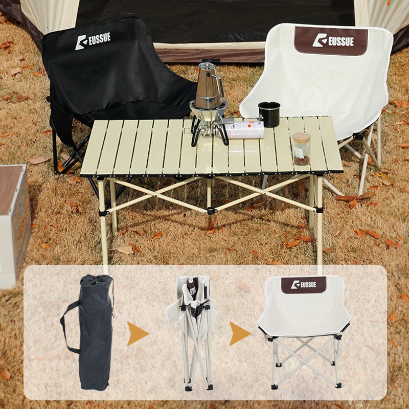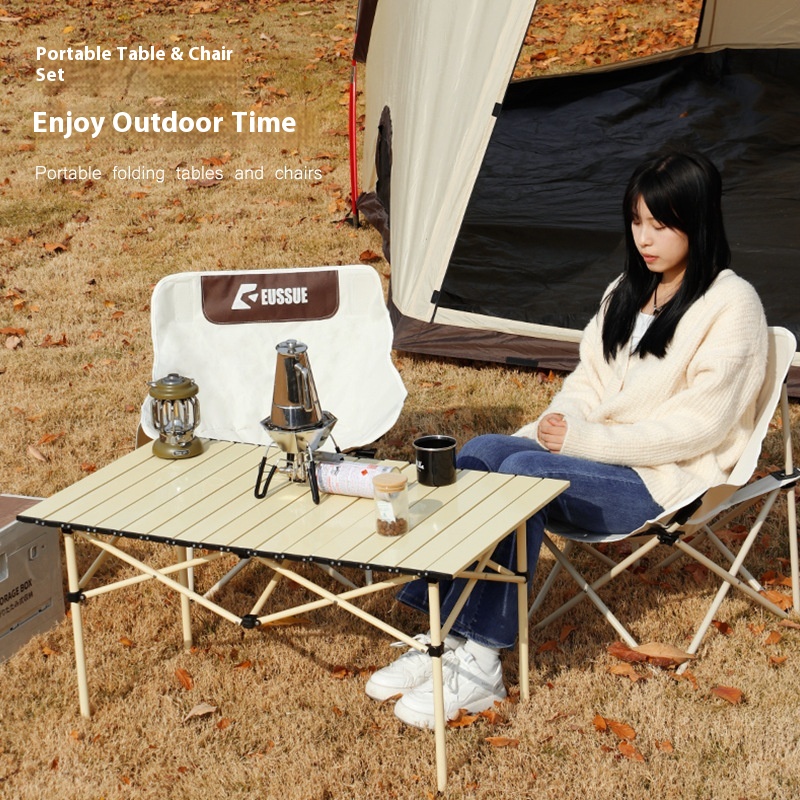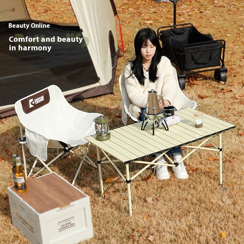 Outdoor Camping Folding Table And Chair Set Portable Aluminum Alloy Egg Roll Table Lightweight Camping Table And Chair Moon Chair