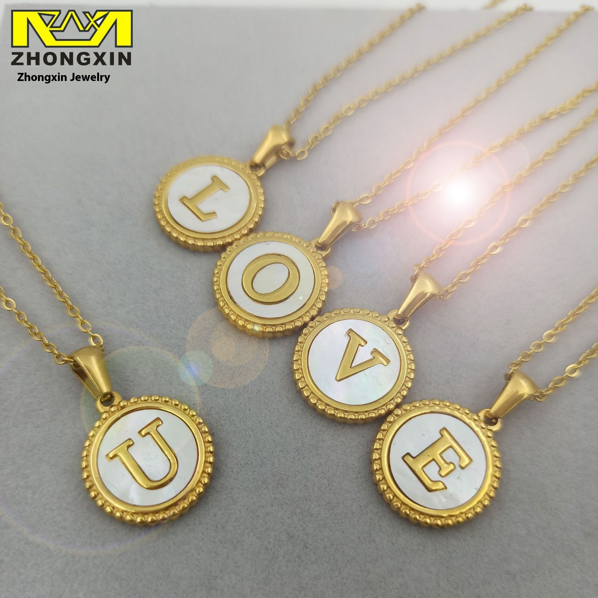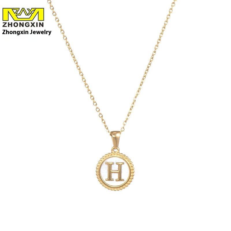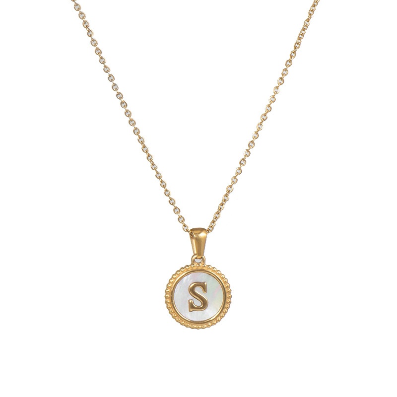 European And American Simple18 KRound Shell Stainless Steel Letter Necklace Female Fashion Stall Titanium Steel Letter Pendant