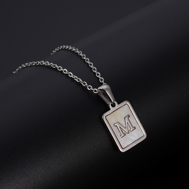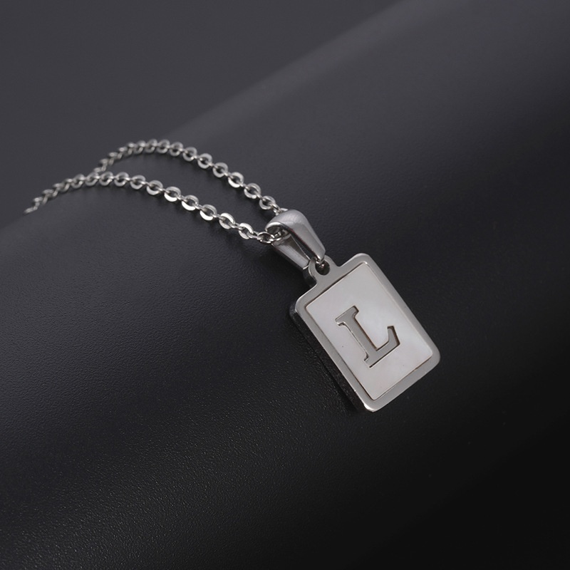 European And American Simple Stainless Steel Shell Letter Necklace Female Titanium Steel Square Capital Letter Pendant Female Jewelry