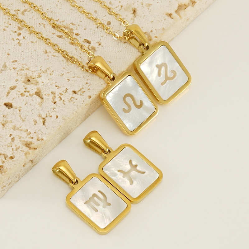 European And American Titanium Steel12 Constellation Hollow Necklace Female18 KStainless Steel Twelve Constellation Pendant Necklace