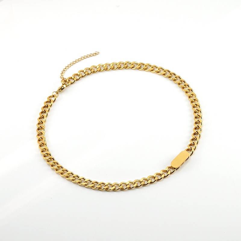 Stainless Steel Cuban Chain Necklace Bracelet Jewelry Set18 KGold Fashion All-match Earring Set
