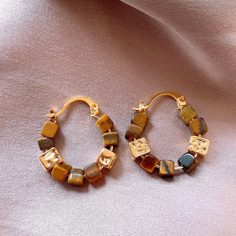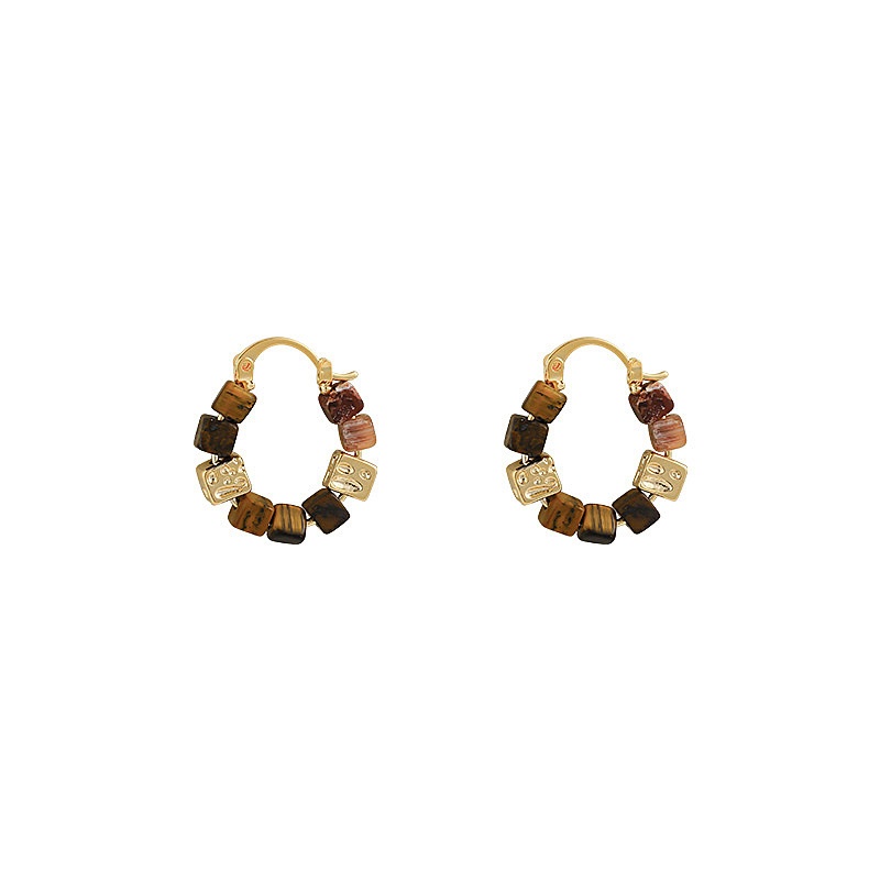 Square Beaded Maillard Earrings For Women Autumn And Winter Retro Light Luxury Temperament Earrings Niche Design High-end Ear Buckles