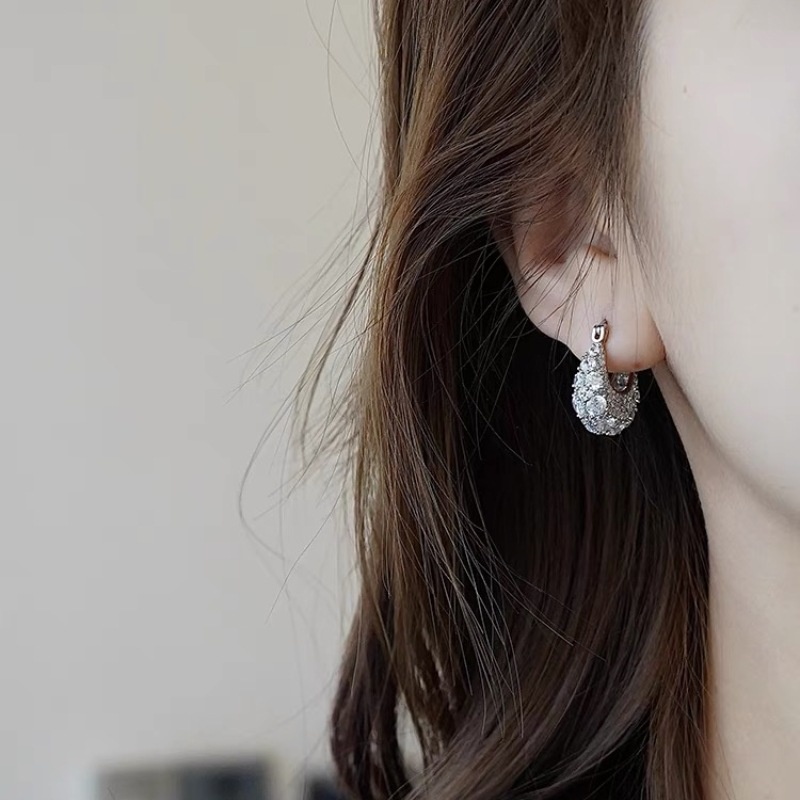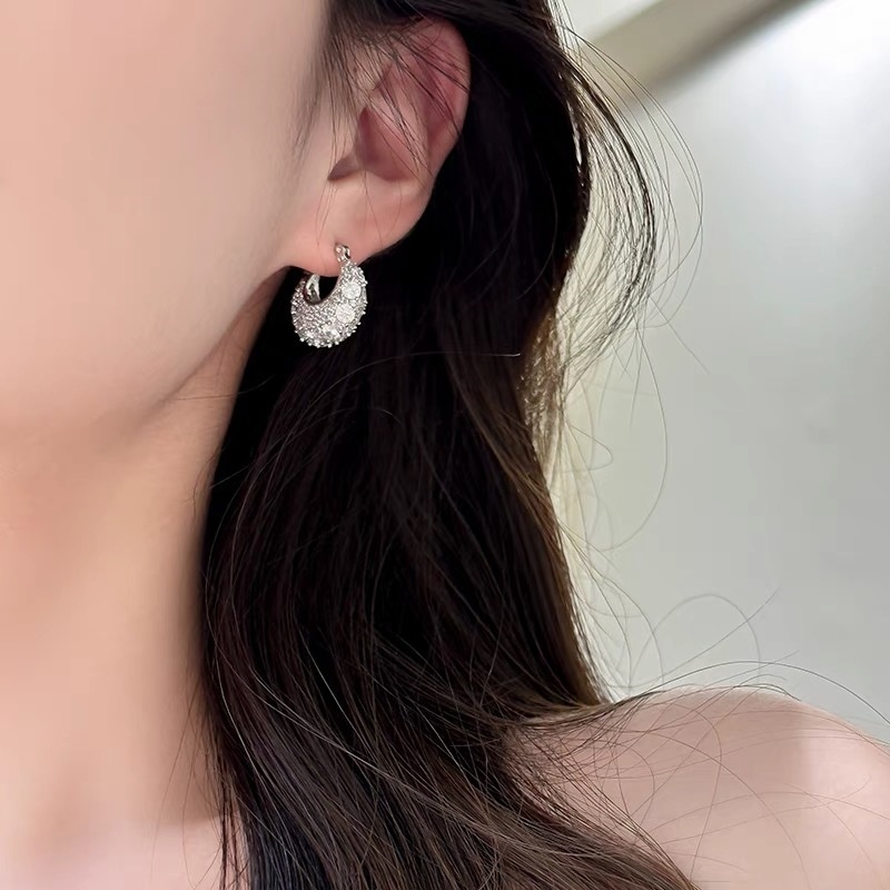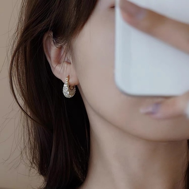 Micro-inlaid Zircon Full Diamond Small Handbag Ear Buckle Light Luxury High-end Sense Super Flash Versatile Earrings Exquisite Temperament Commuter Earrings