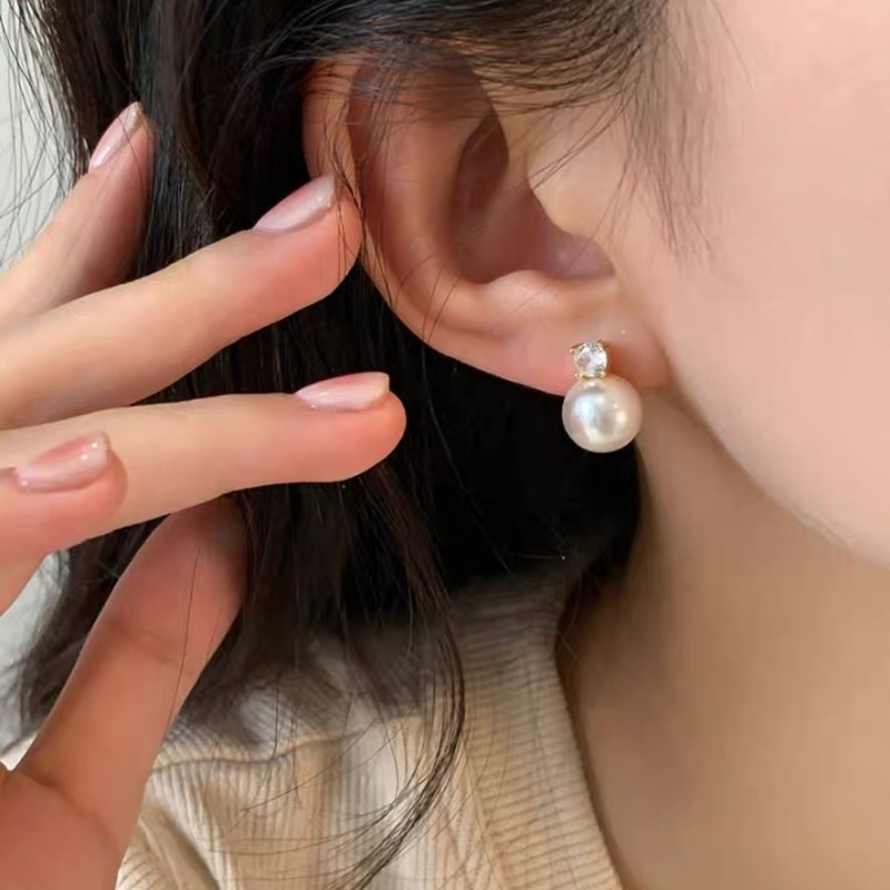 Light Luxury Zircon Pearl Earrings Niche Design High-end Earrings