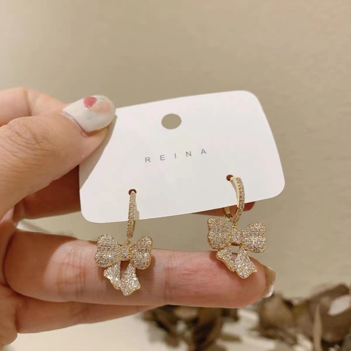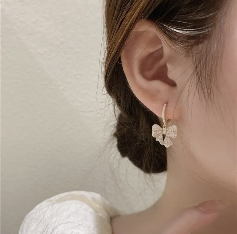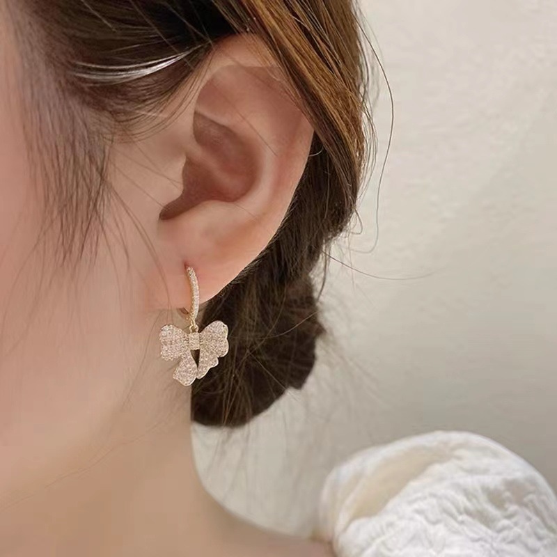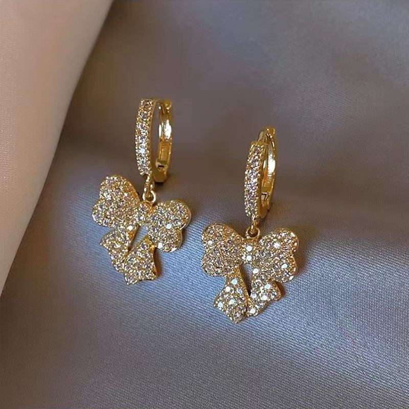 Light Luxury Bow Earrings Exquisite Full Diamond Zircon Real Gold Plated Earrings Female Niche High-end Lady Earrings