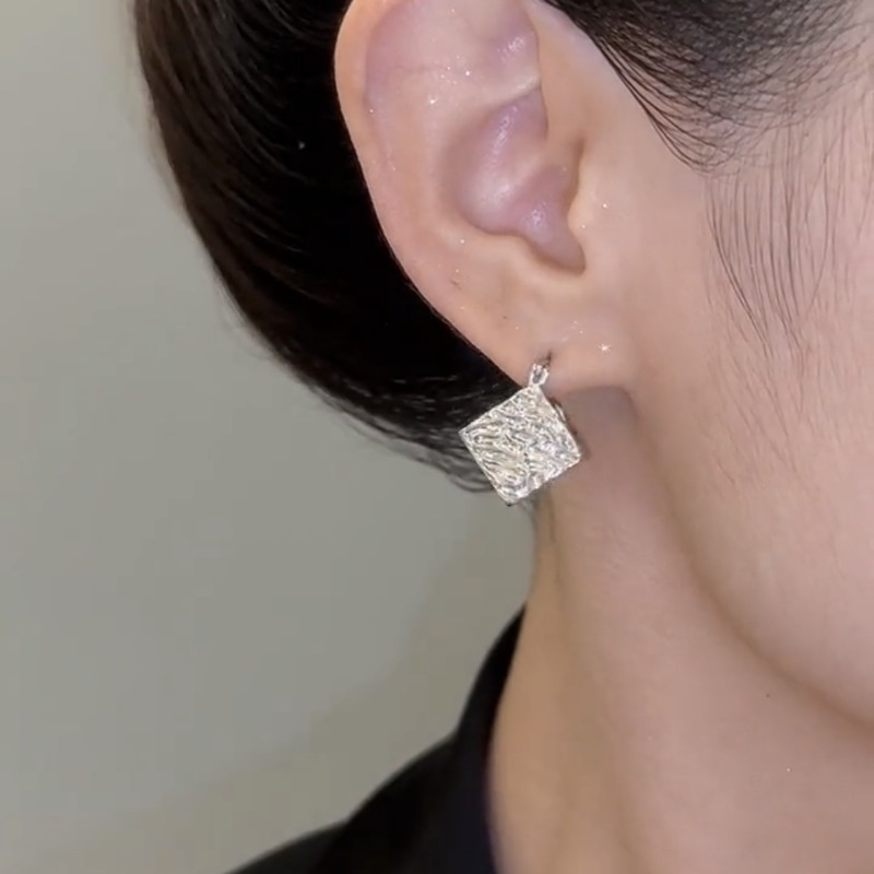 Ripple Texture Square Earrings Fashionable Cold Style Commuting Geometric Cube Three-dimensional Earrings Advanced Commuting Earrings