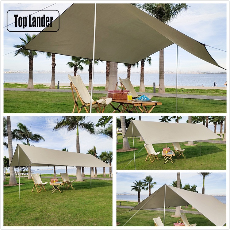 Awning Outdoor Tent Portable Camping Four-corner Plaid Cloth Awning Beach Camping Awning