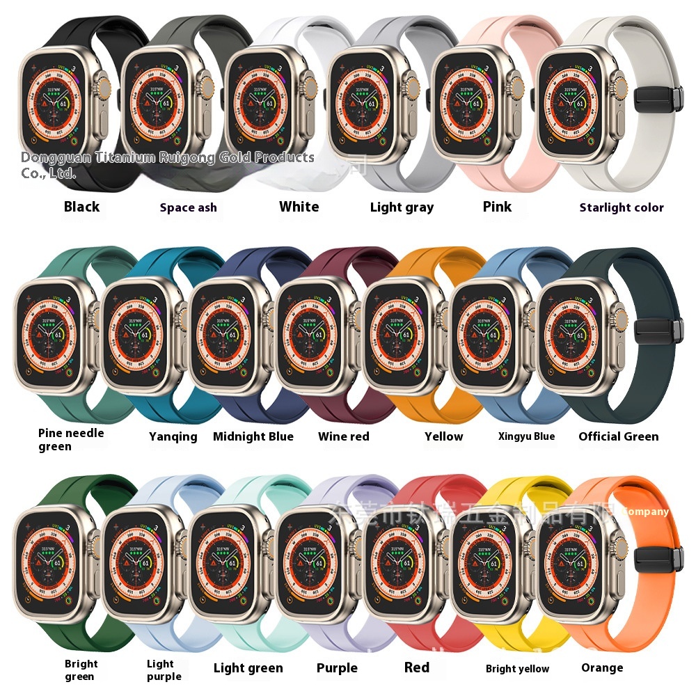 Applicable To Apple Silicone Watch Strap Apple Watch8ultra Apple Magnetic Folding Buckle Watch Strap Without Losing Magnet