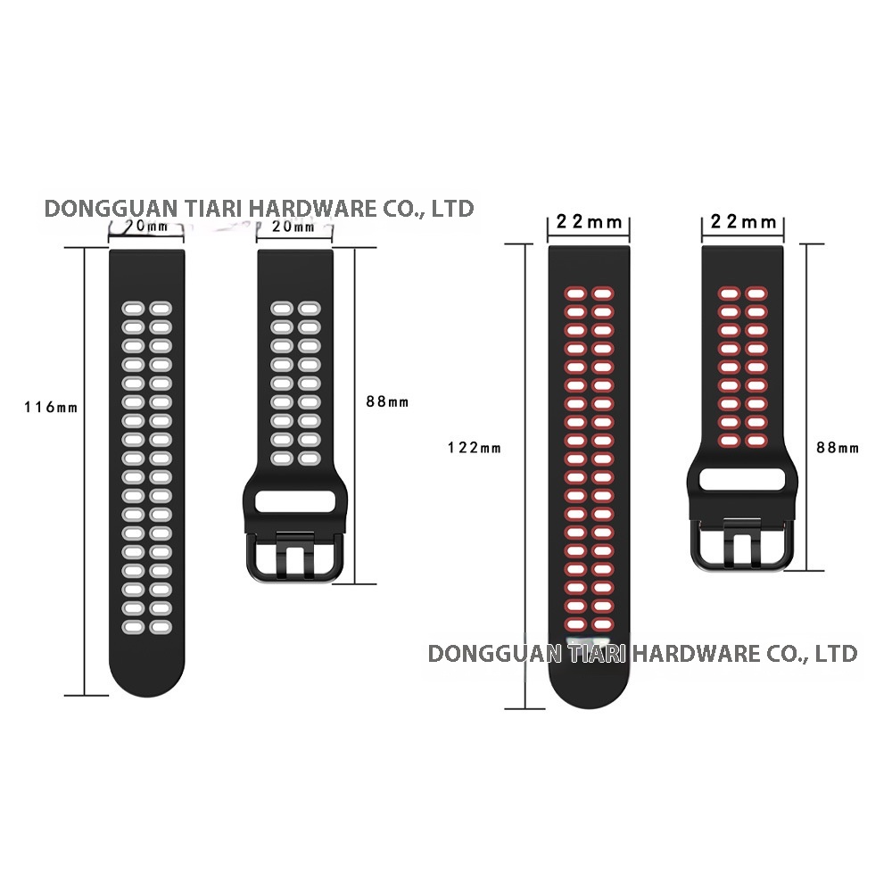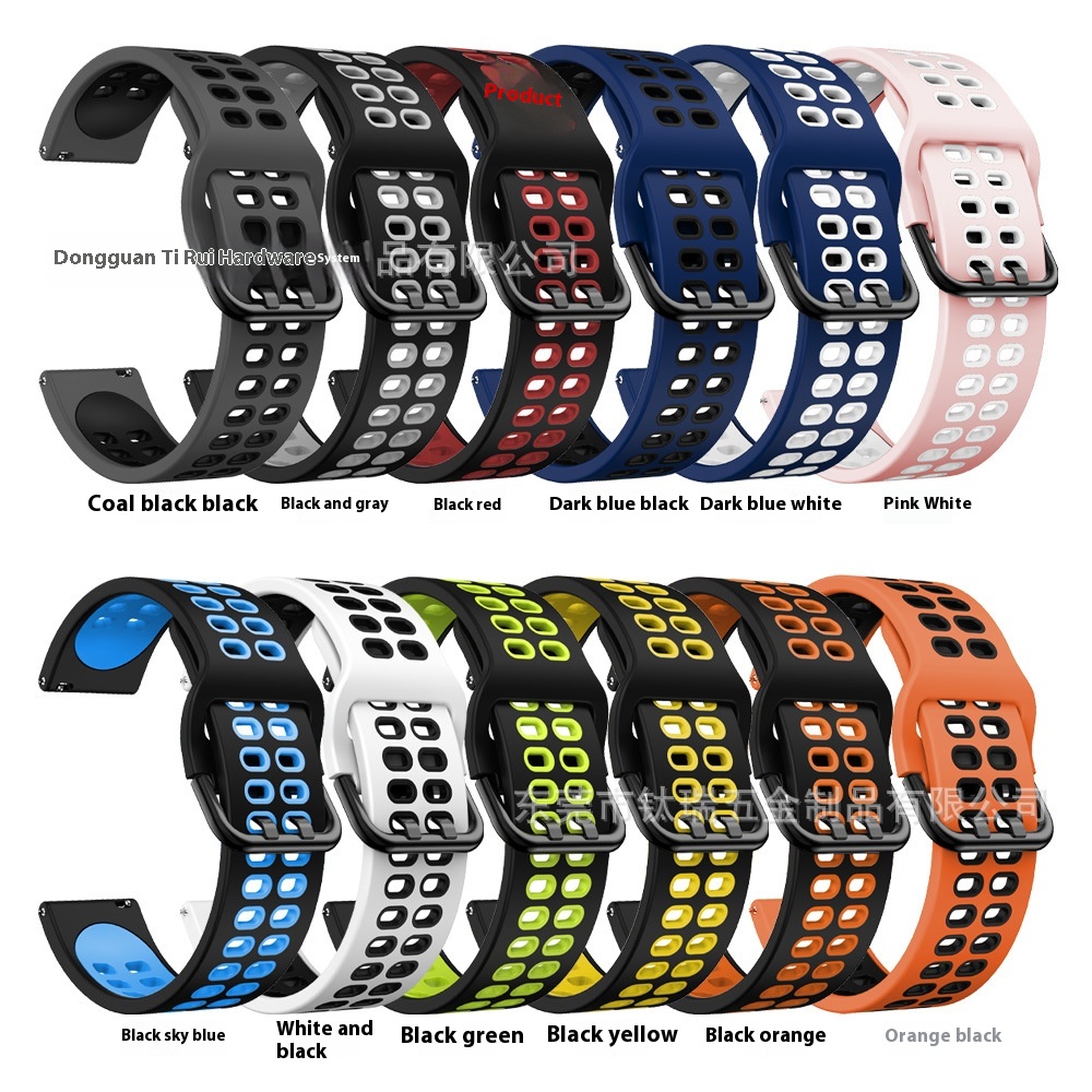 Suitable For Samsung Watch5 Two-color Silicone Strap Huawei Watch GT2/3 Flat Head Breathable Silicone Strap20mm